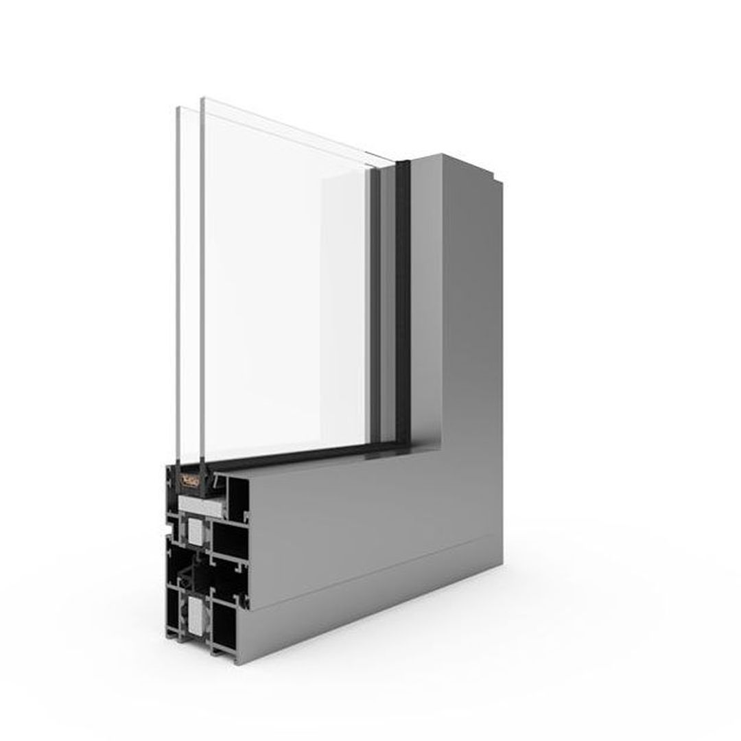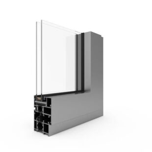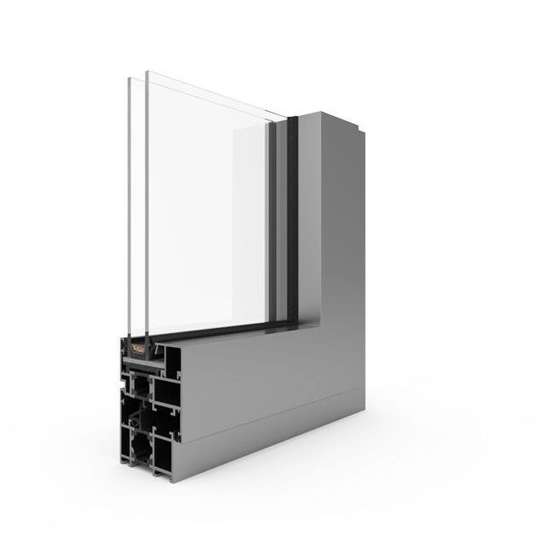 3-Kammersystem aus stabilem Aluminium für flexible Konstruktionen und flächenbündiger Optik. Rahmenbautiefe von 60 mm; Flügelbautiefe von 69 mm