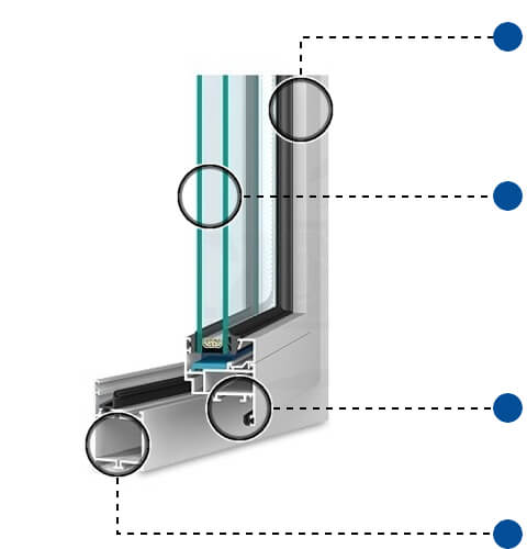 Ein- oder zweifach Verglasung mit einer Verglasungsdicke von bis 24 mm. Optional: Verwendung von Funktionsgläsern für mehr Einbruch- oder Schallschutz.
