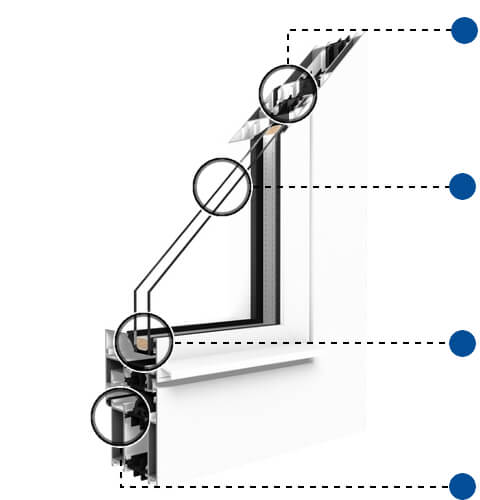 - Einbautiefe 70 mm (Rahmen), 79 mm (Flügel)