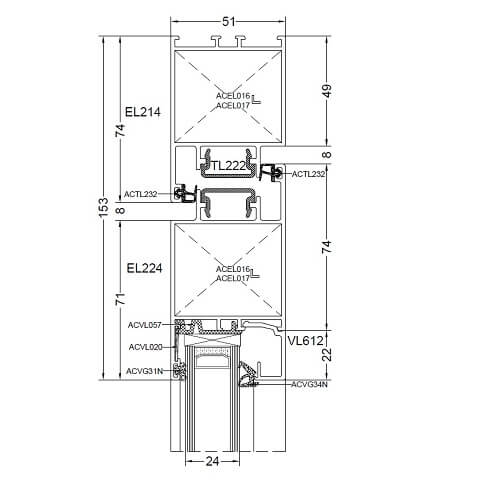 - 1-Kammersystem mit 51 mm Rahmentiefe
