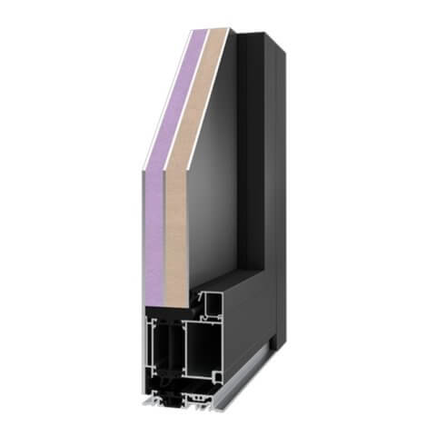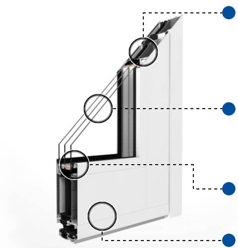 Hochwertiges 3-Kammerprofil mit thermischer Trennung aus Glasfaser verstärktem Polyamid und zusätzlicher Kammer mit Thermoeinlage für höhere Wärmedämmung.