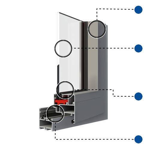 Verglasung mit einer maximalen Glasstärke von bis zu 36mm. Optionale Ausstattung mit Funktionsgläser: Wärmeschutz-, Schallschutz-, Sichtschutz- und Einbruchschutzverglasungen.