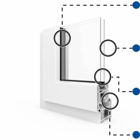 Das Kunststoffsystem verfügt über ein Anschlagsdichtungssystem (AD) mit 2 Dichtungsebenen aus EPDM, die einen optimalen Schutz bieten.