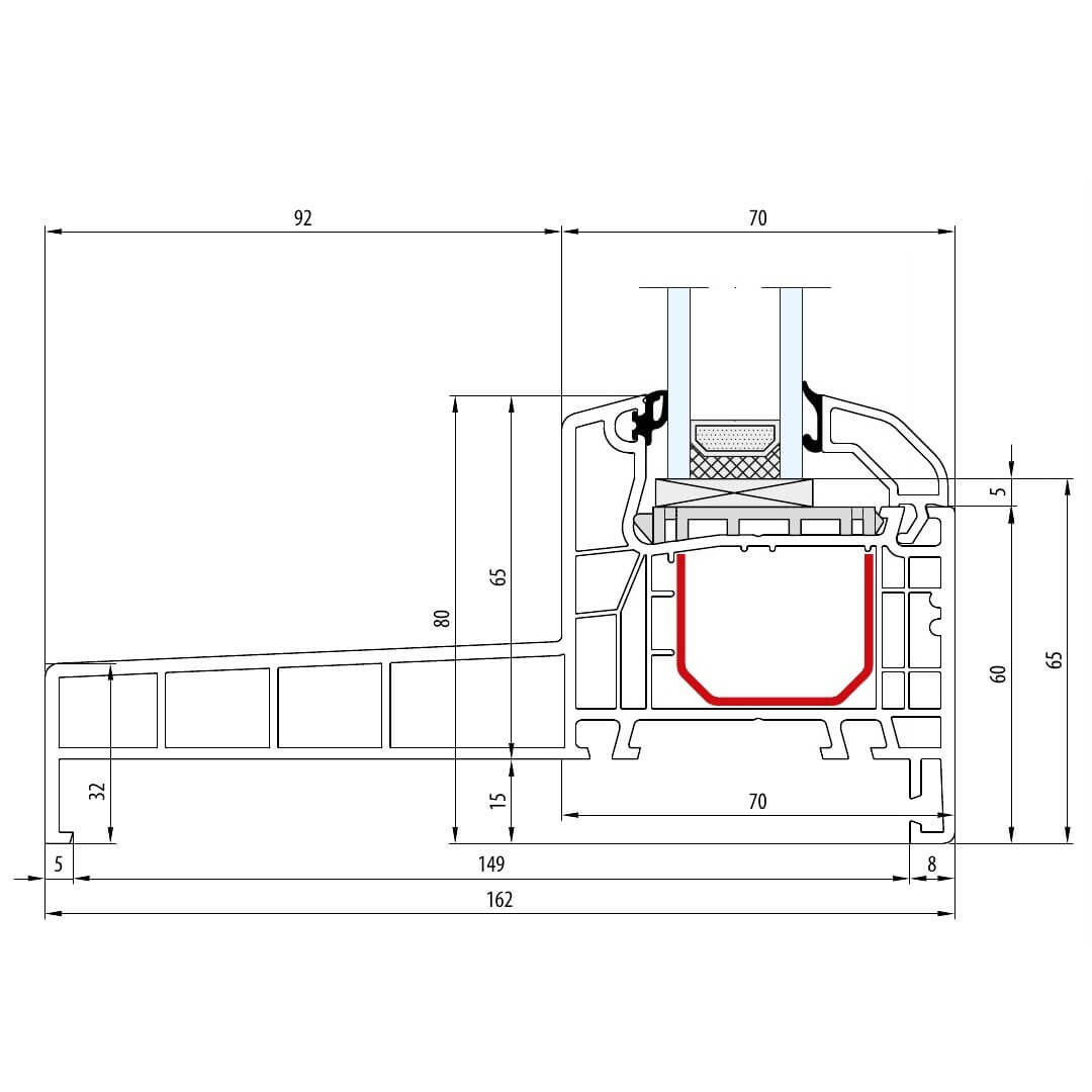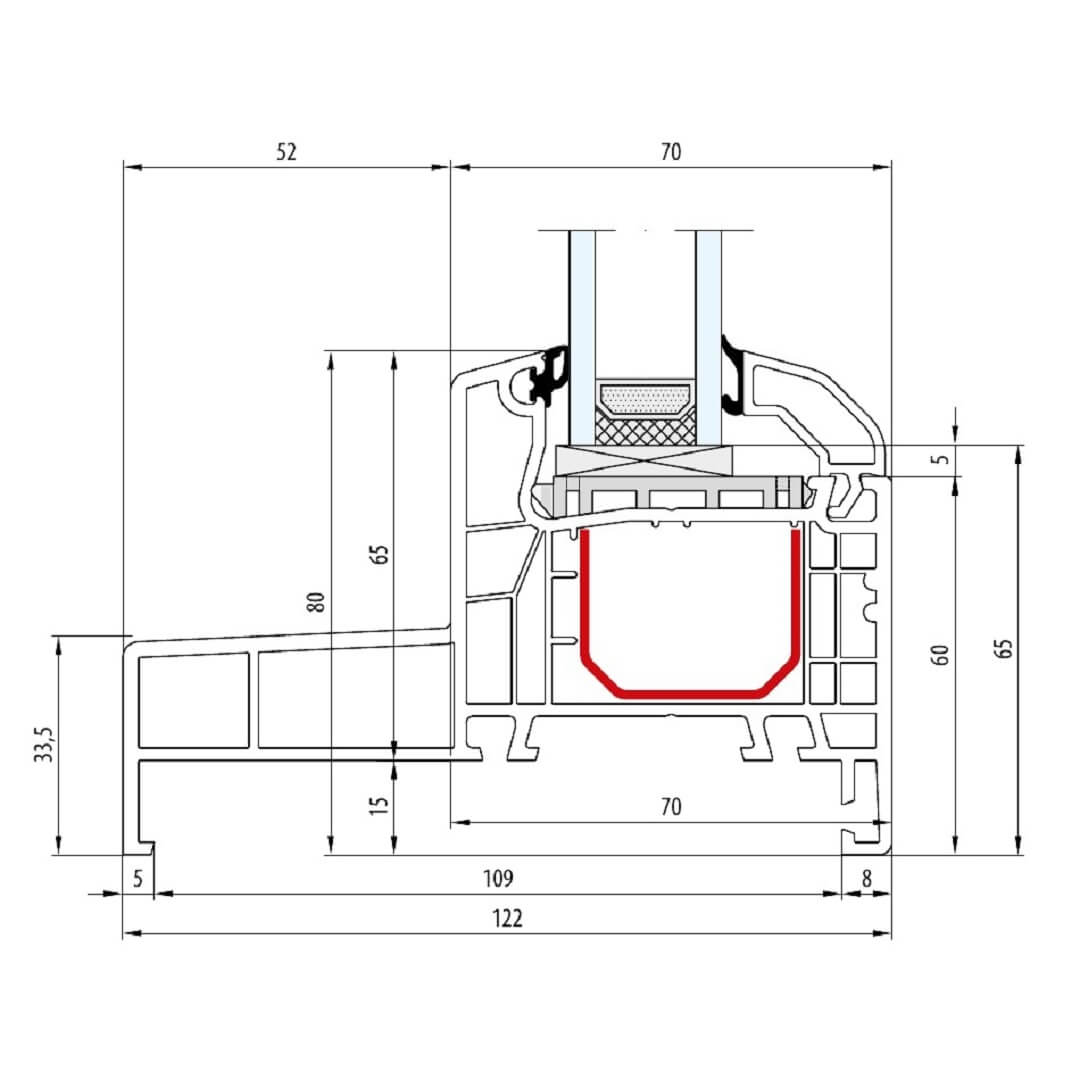 - 5-Kammersystem im Rahmen und Flügel
