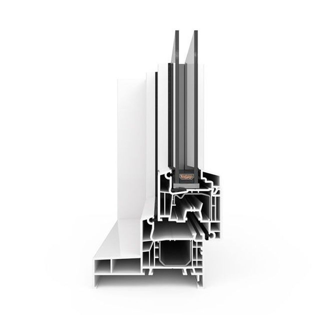 5-Kammerprofil mit variabler Monoblock-Tiefe von 70mm bis 160mm für eine hervorragende Wärmedämmung und Sicherheit. Große Verstärkungskammer mit Stahlarmierung für gute Statikwerte.