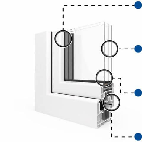 6-Kammerprofil mit 82,5 mm Bautiefe.