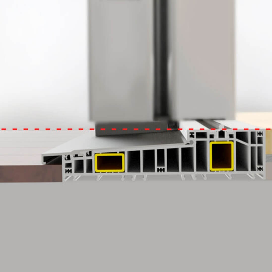 Die Master Step Schwelle ist ideal für verschiedene PVC-Systeme und Holzkonstruktionen und passt sich somit flexibel den Bedürfnissen verschiedener Bauprojekte an. Sie ist die perfekte Wahl für alle, die nach einer soliden und effizienten Lösung für ihre Hebe-Schiebe-Systeme suchen.