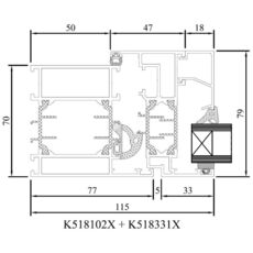 Aluminiumfenster MB-70 besitzt den gleichen Aufbau nur ohne die Isolierschichten