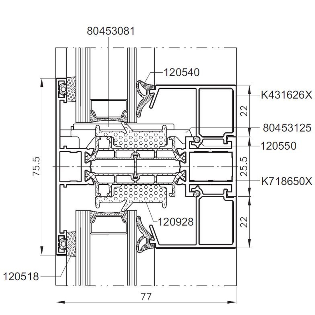 MB-77hi Glasteilende Sprosse/Kämpfer 75,5 mm