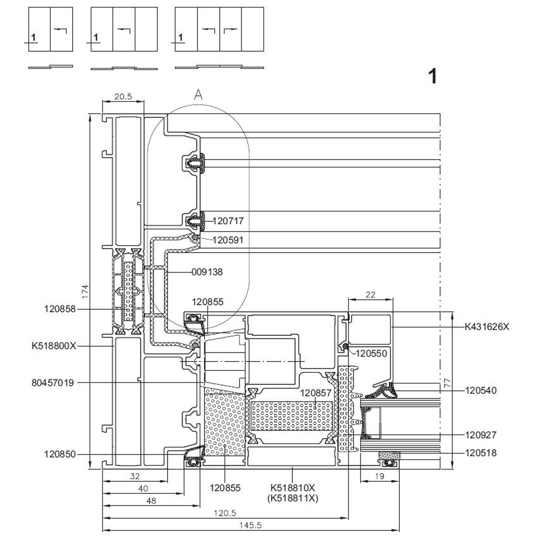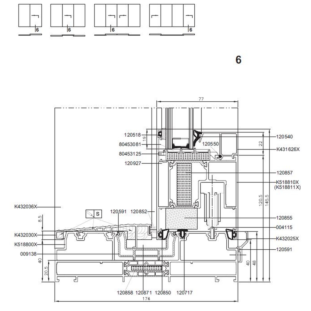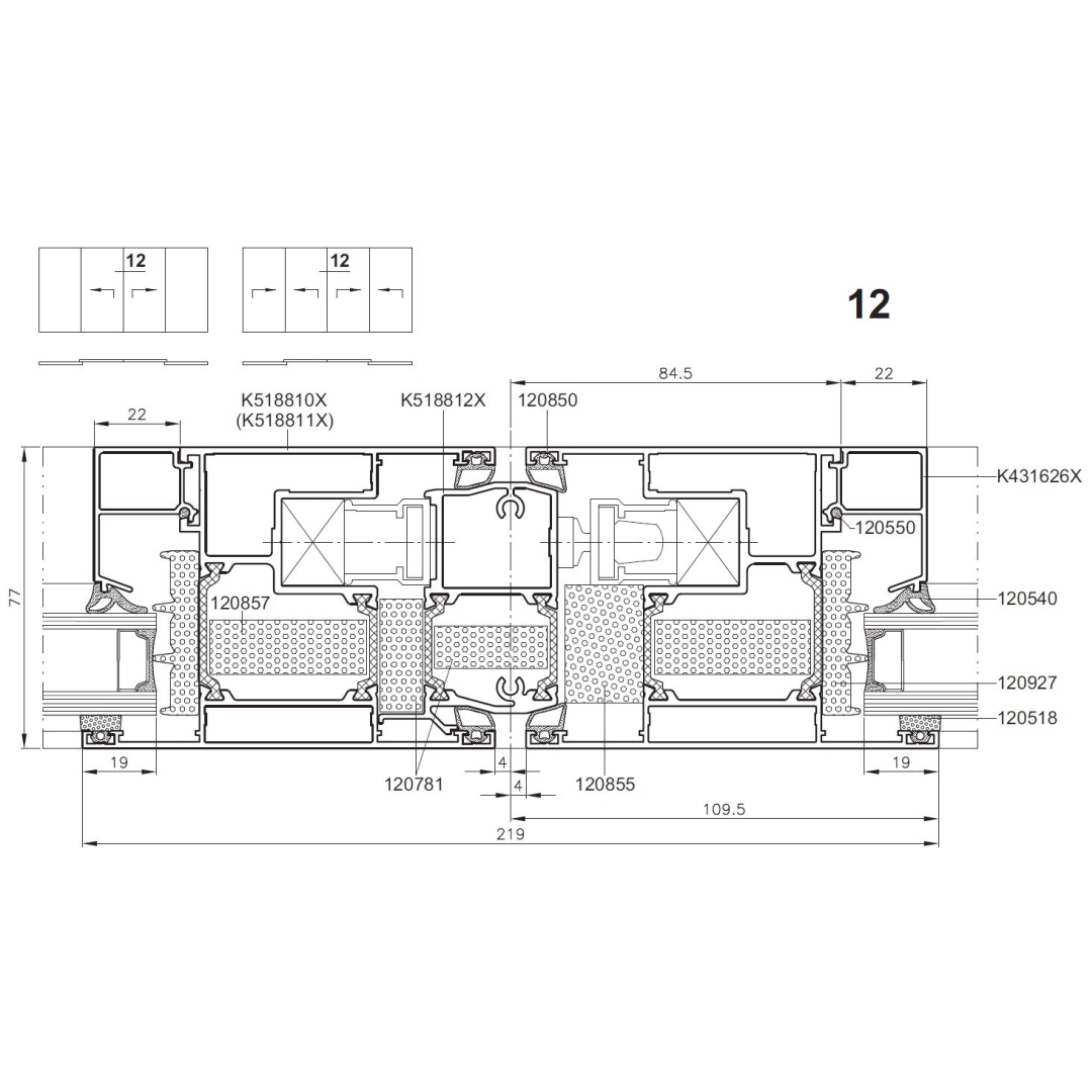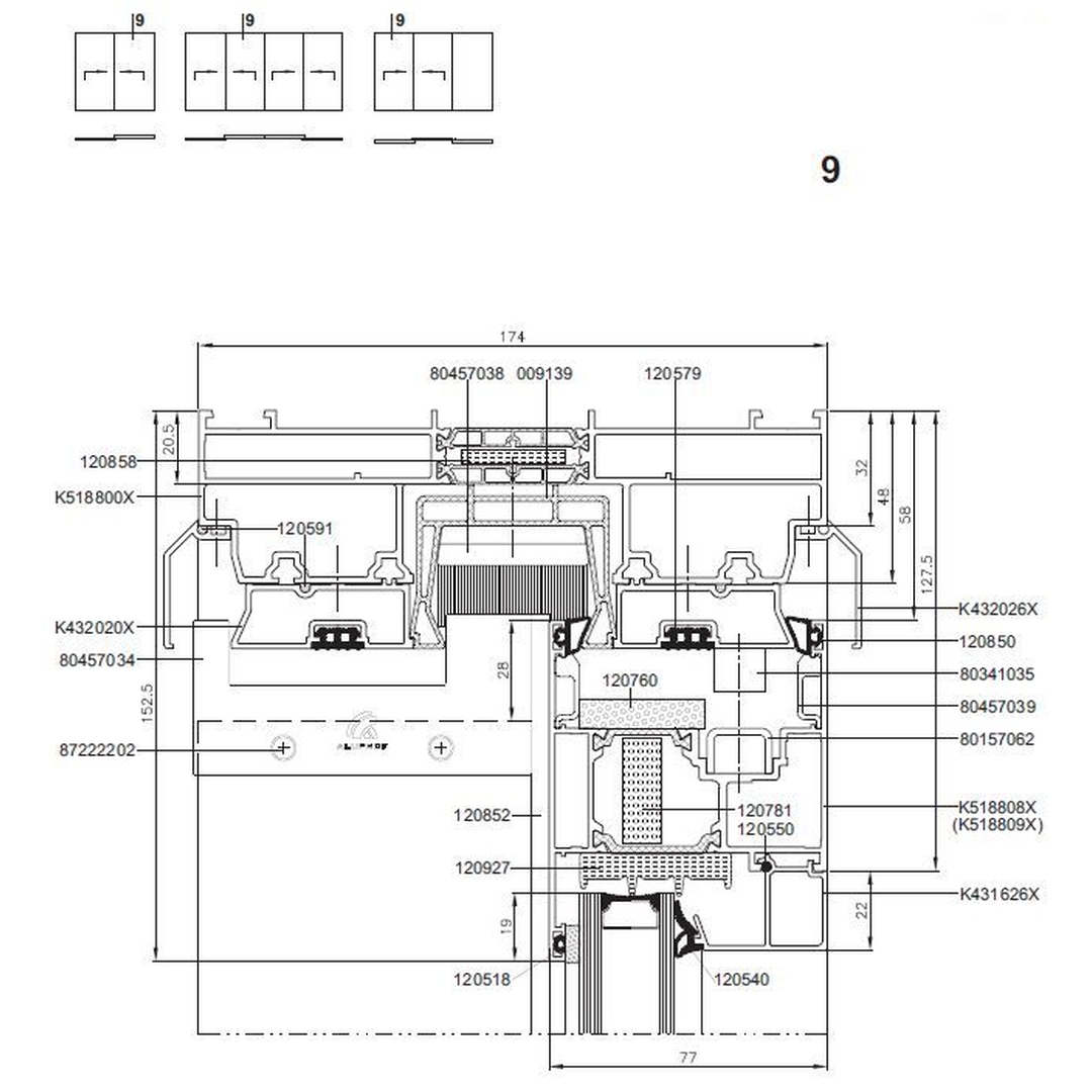 Hebeschiebetürprofil Aluprof MB-77hi Querschnitte