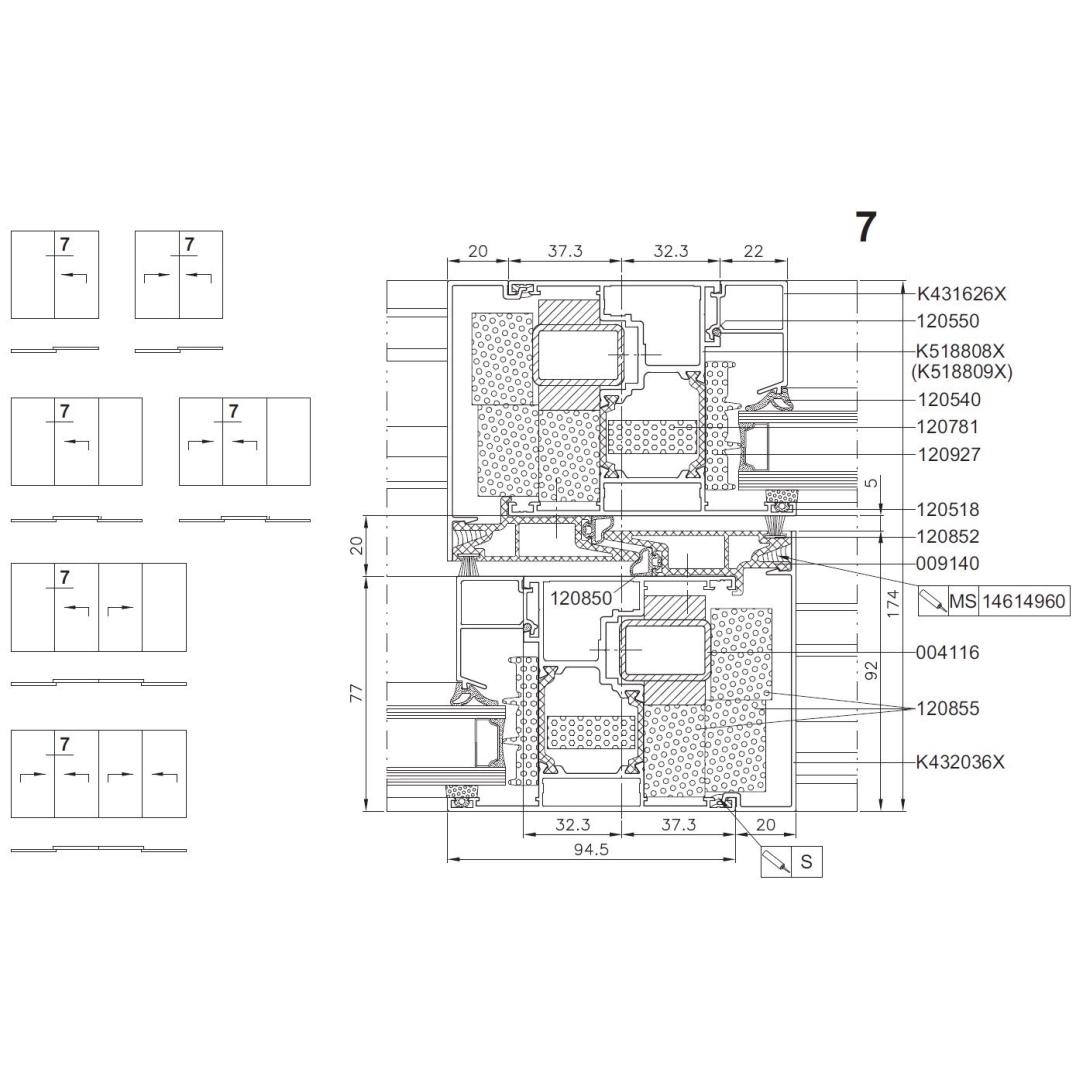 MB-77hi HS Tür Schwelle und zwei Schiebeflügel