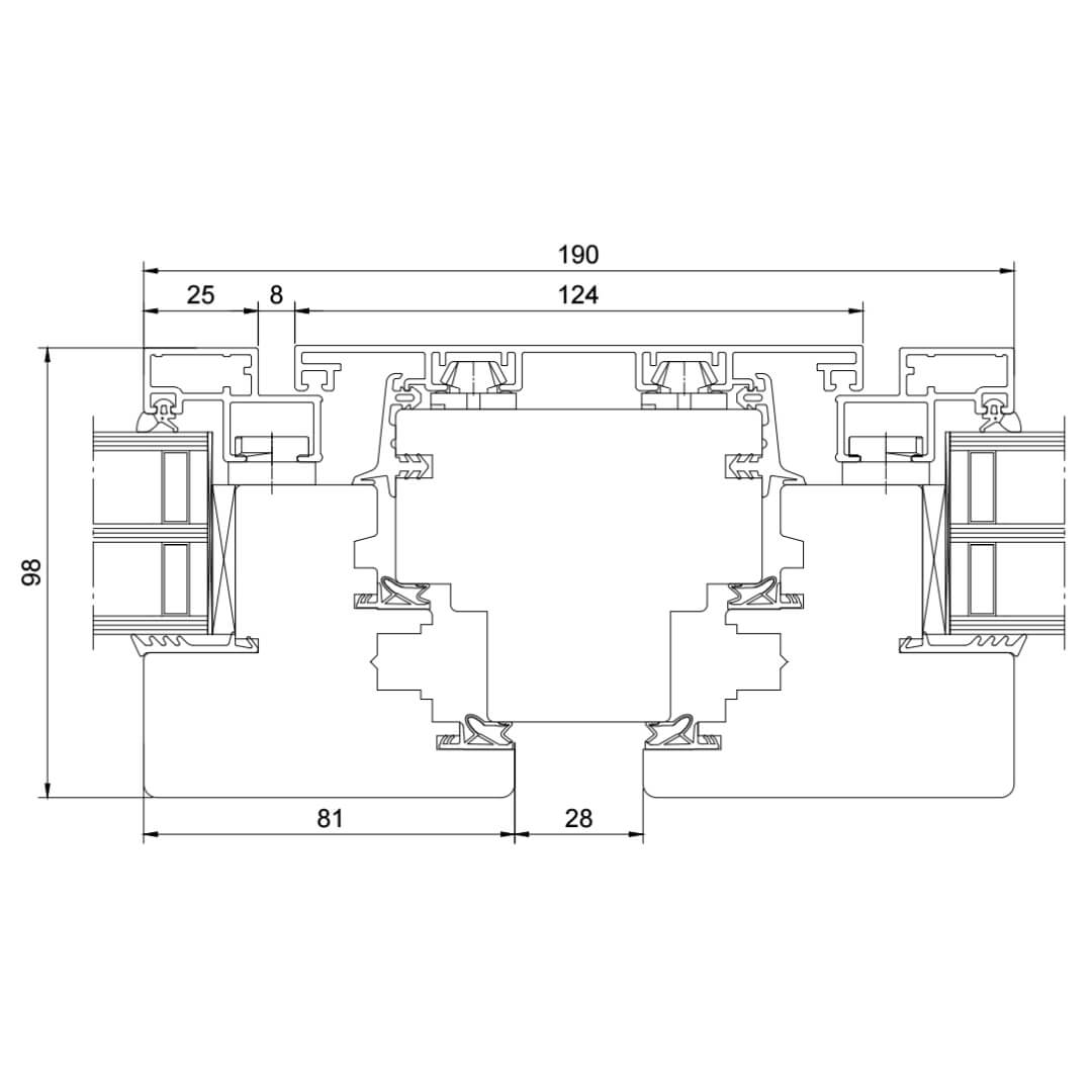 Drutex Duoline 68 Pfosten Glasteilende Kämpfer-Sprosse 100mm Festverglasung