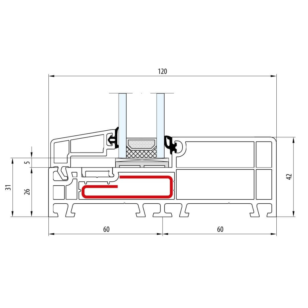 Aluplast Nordline Pfosten 61mm Bautiefe 114mm (Horizontal) - 140x99