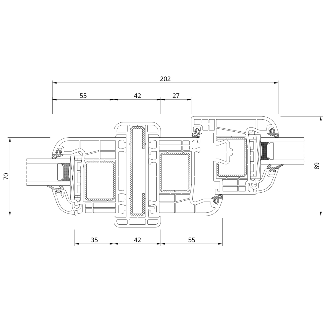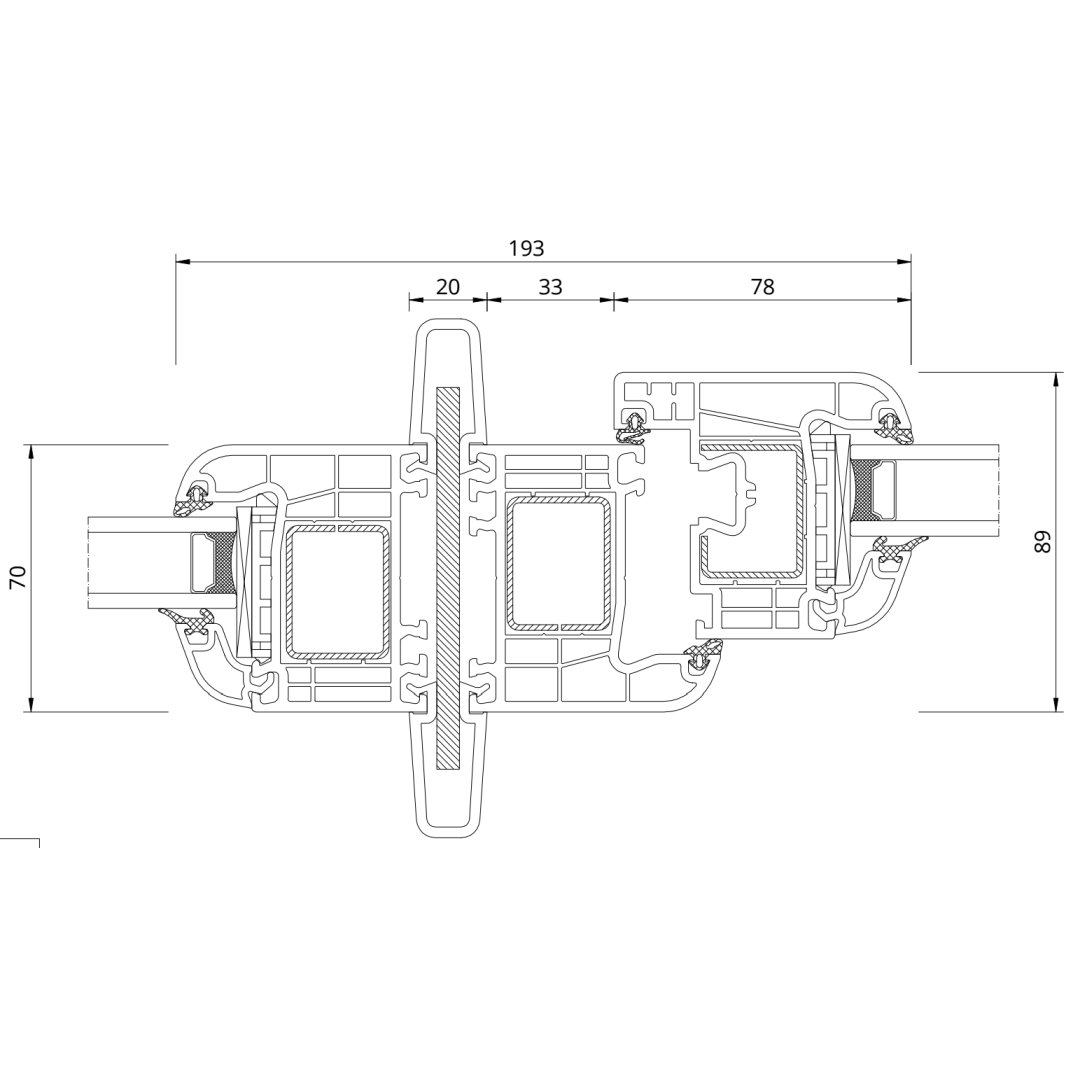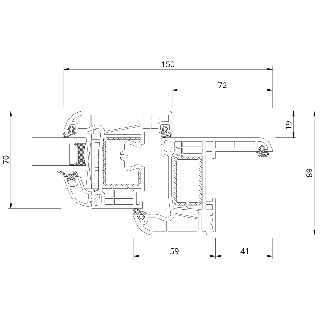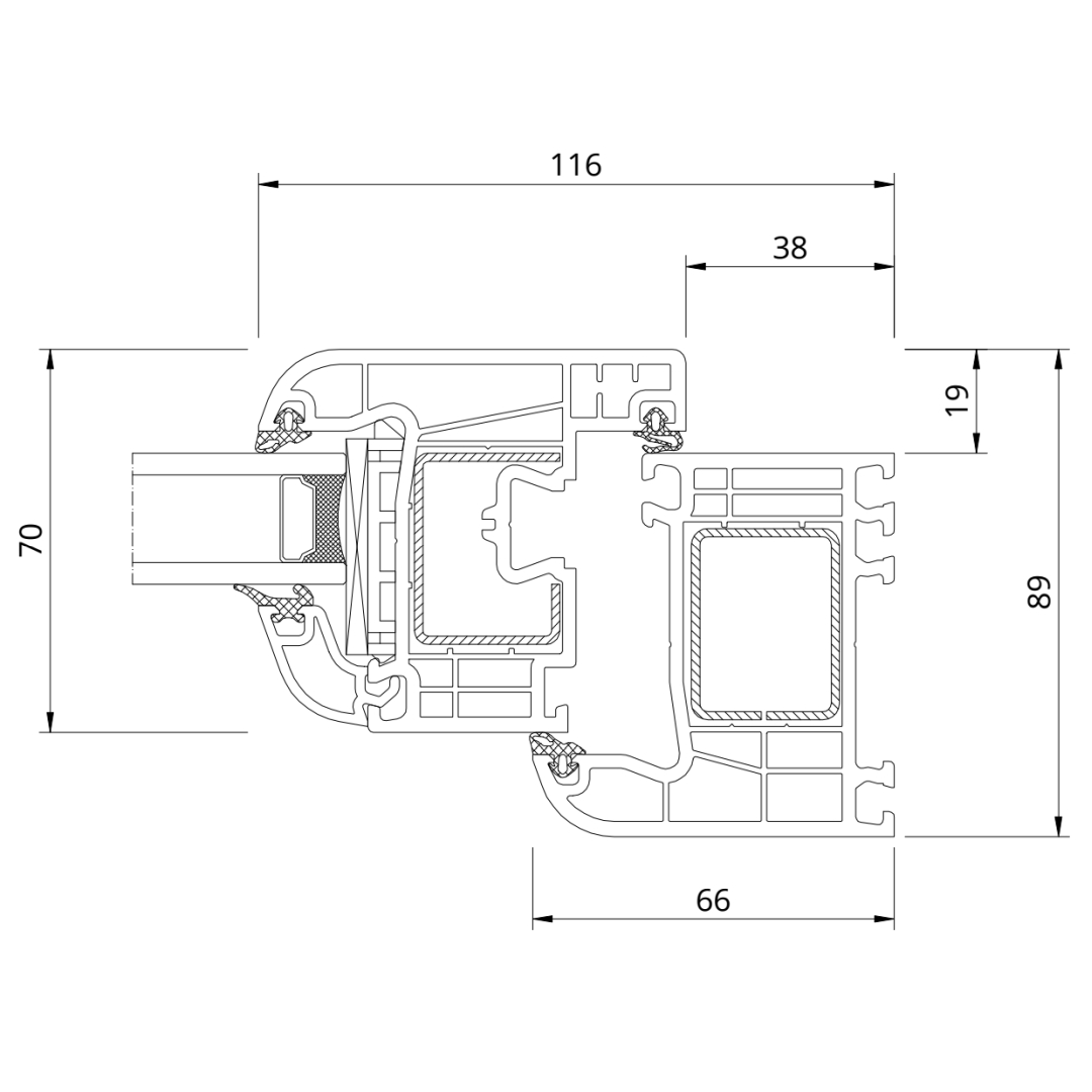 Kunststofffenster Iglo EXT besitzen eine Bautiefe (Rahmen) von 70mm.