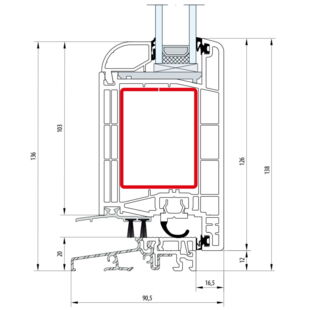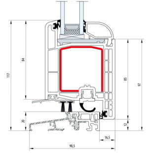 Gealan S 8000 Balkontürschwelle 20mm Round-Line Flügel 6-Kammer - 8096