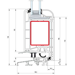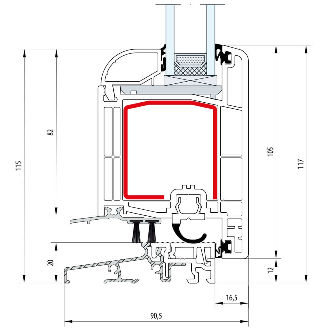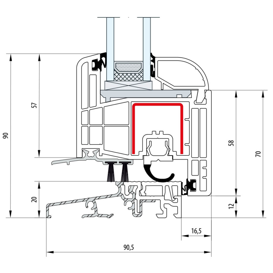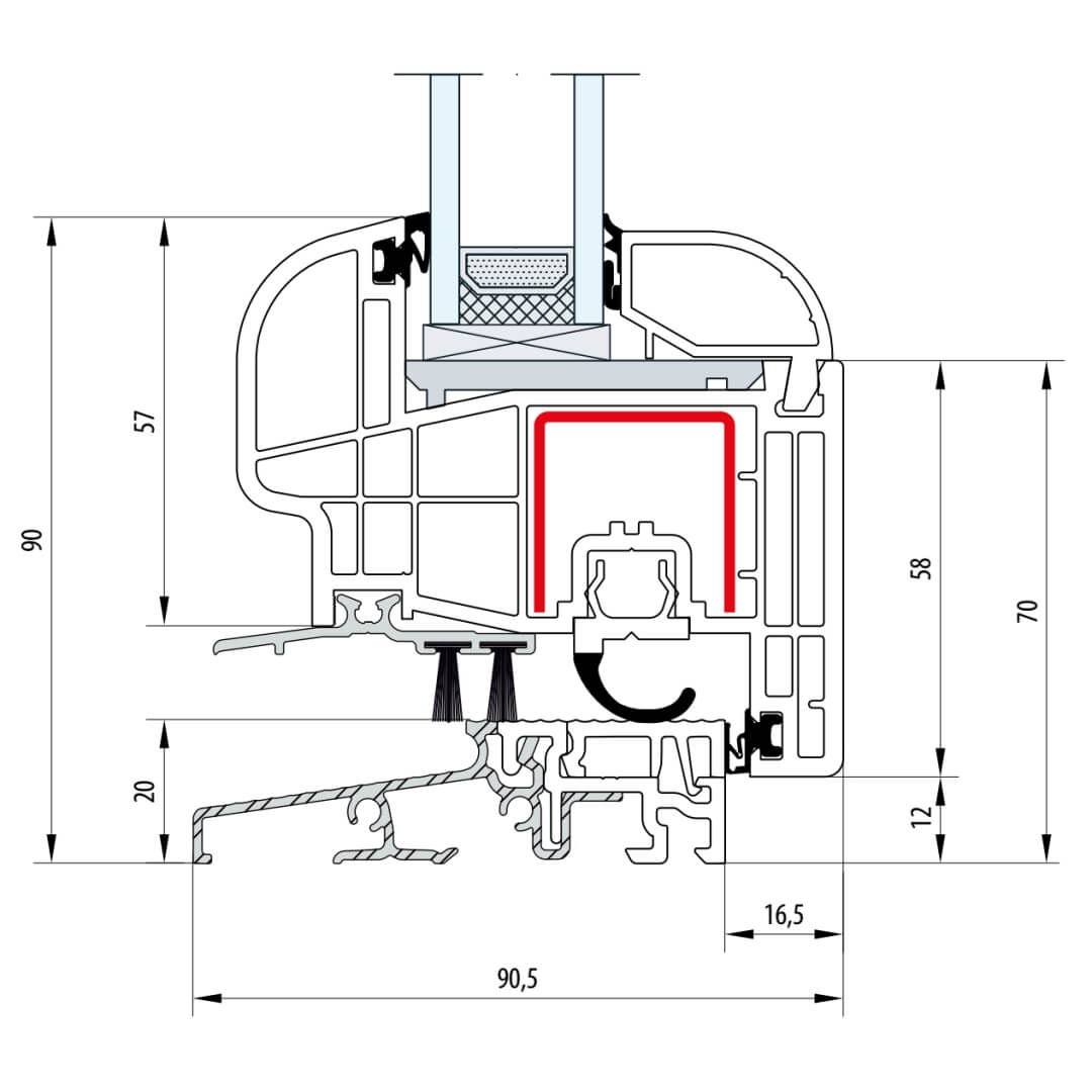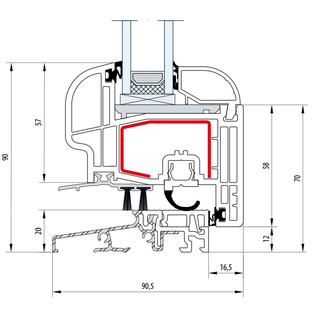Gealan S 8000 Balkontürschwelle 20mm Classic-Line Flügel 6-Kammer - 8095