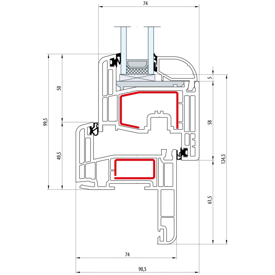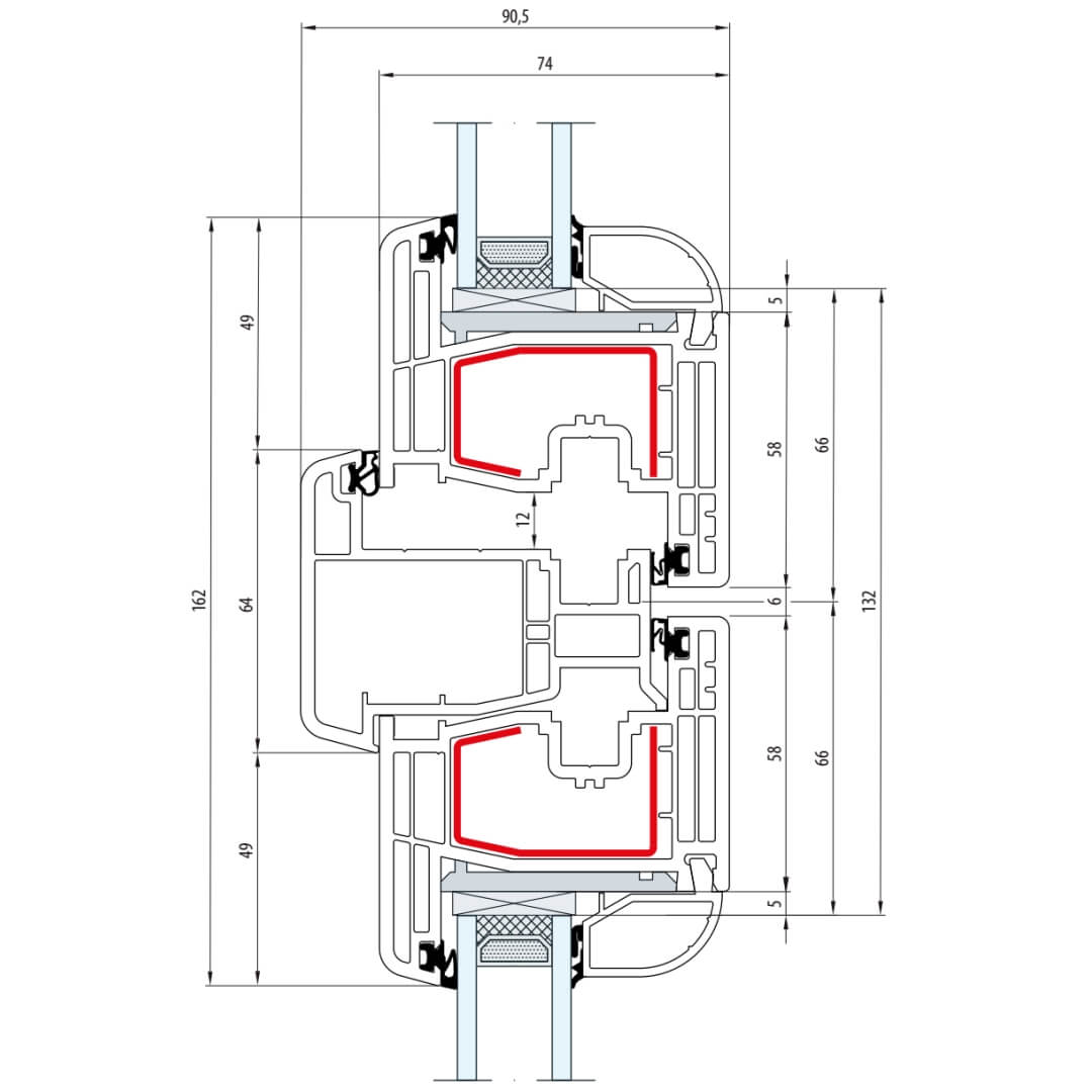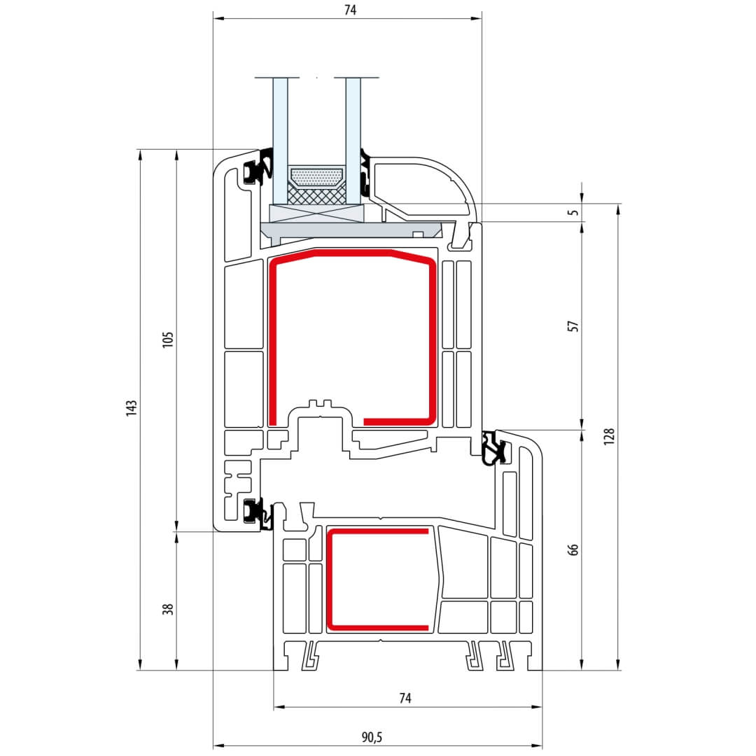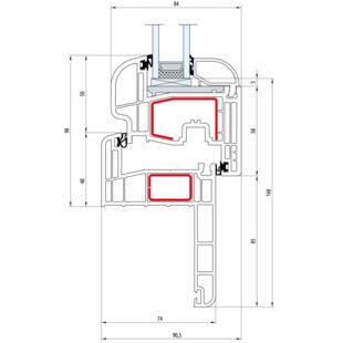 Gealan S 8000 Stulp 64mm Fenster Classic-Line Flügel 6-Kammer - 8080 8095