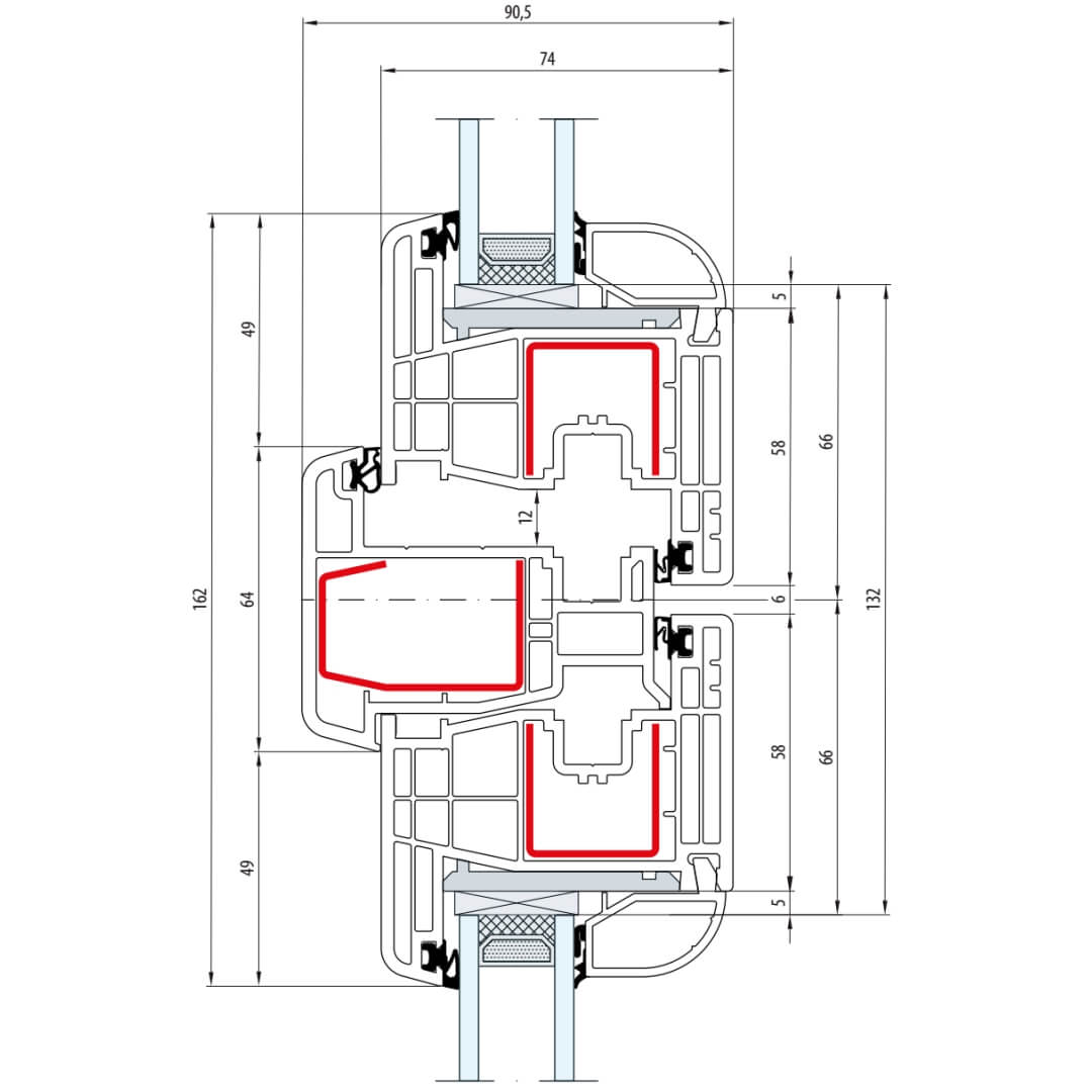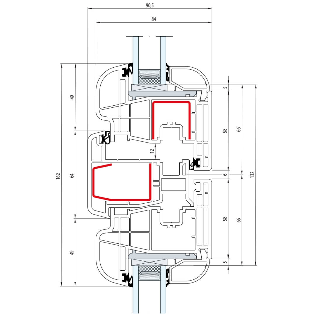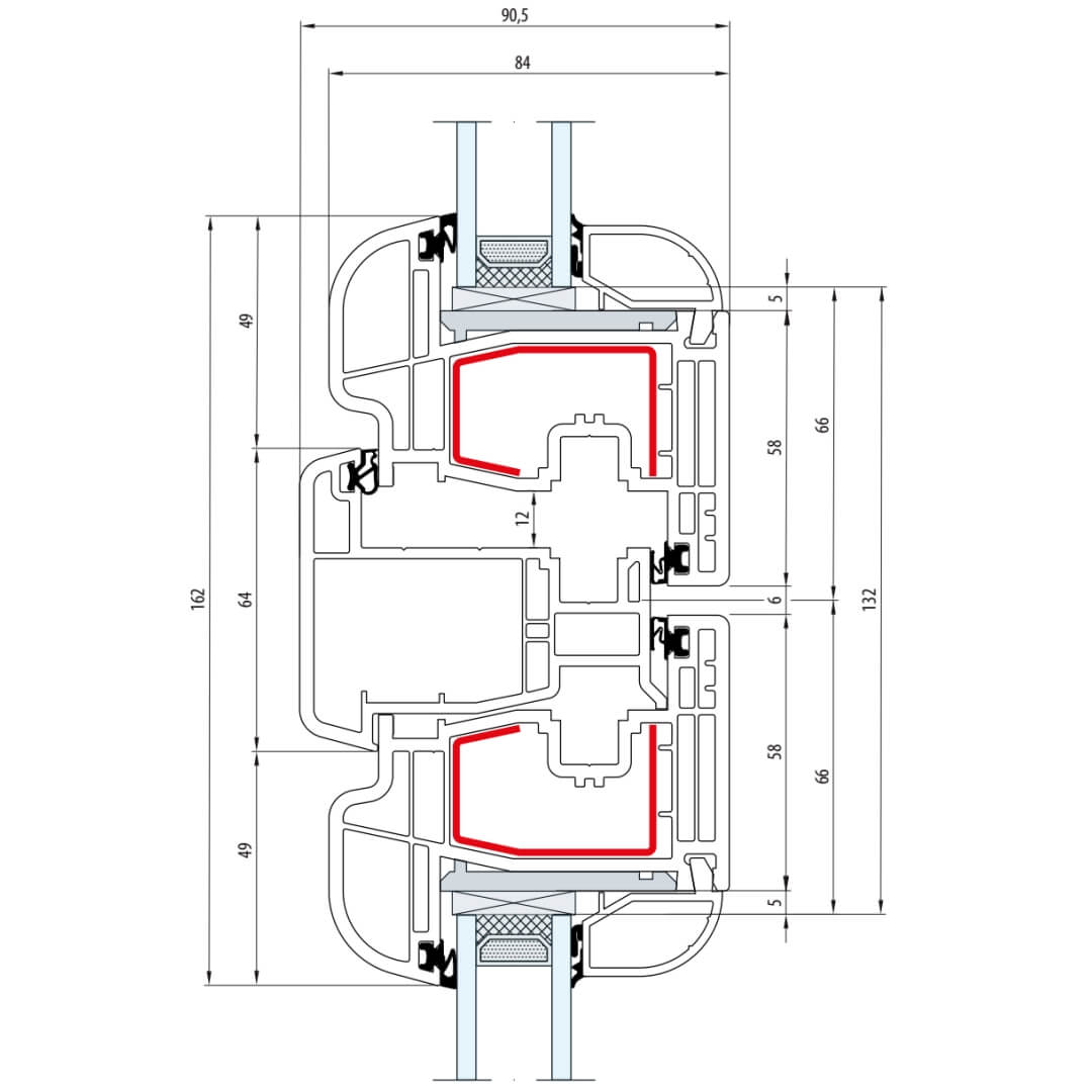 Gealan S 8000 Stulp 64mm Fenster Classic-Line Flügel 6-Kammer - 8080 8095