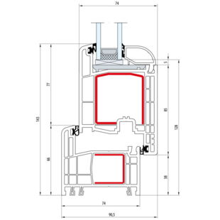Gealan S 8000 Pfosten 94mm Fenster Round-Line Flügel 6-Kammer - 8040 8096