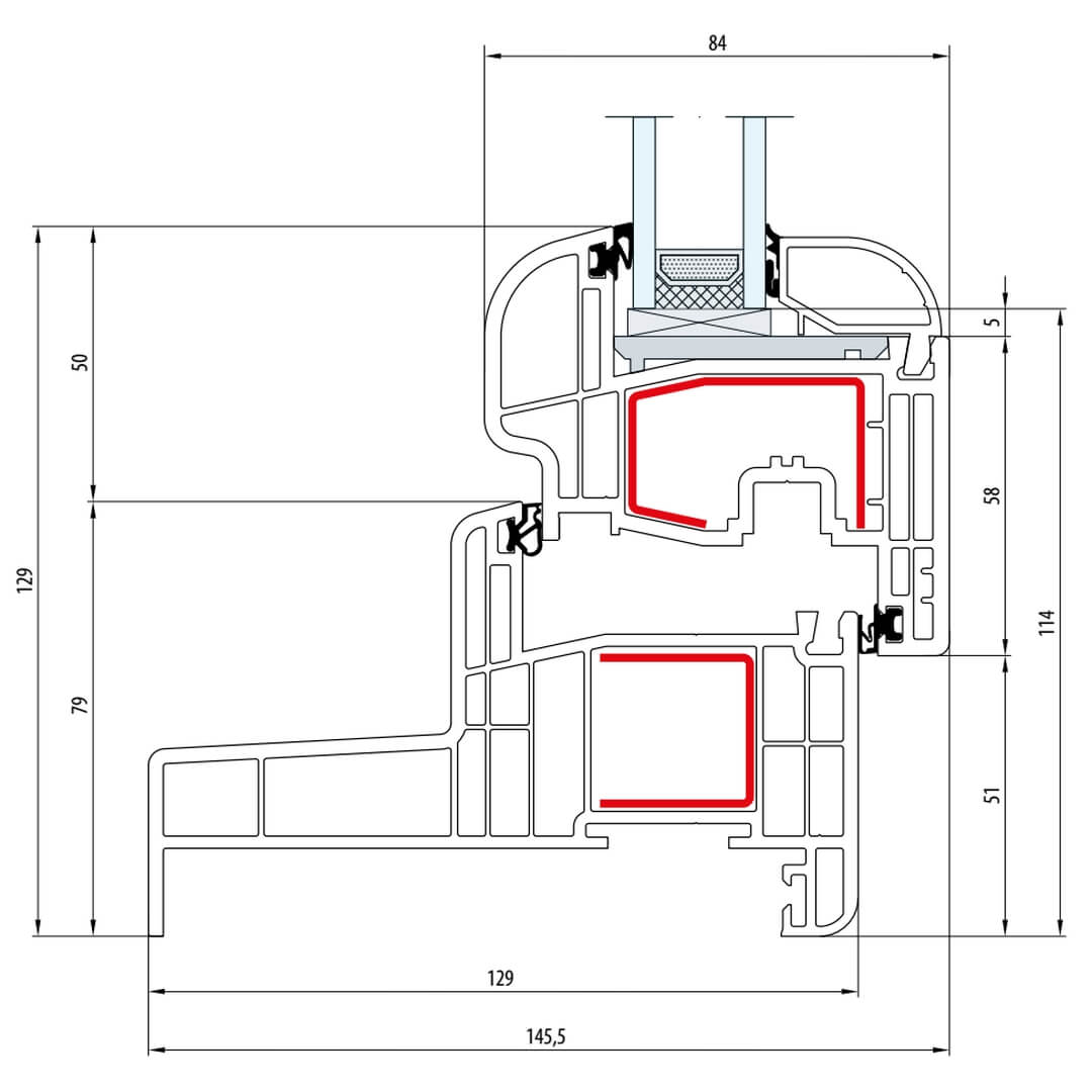 Gealan S 8000 - Monoblock 129mm - Fenster Classic-Line Flügel 5-Kammer - 5501 8092