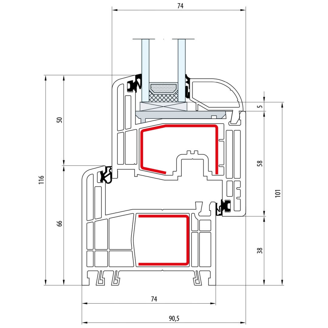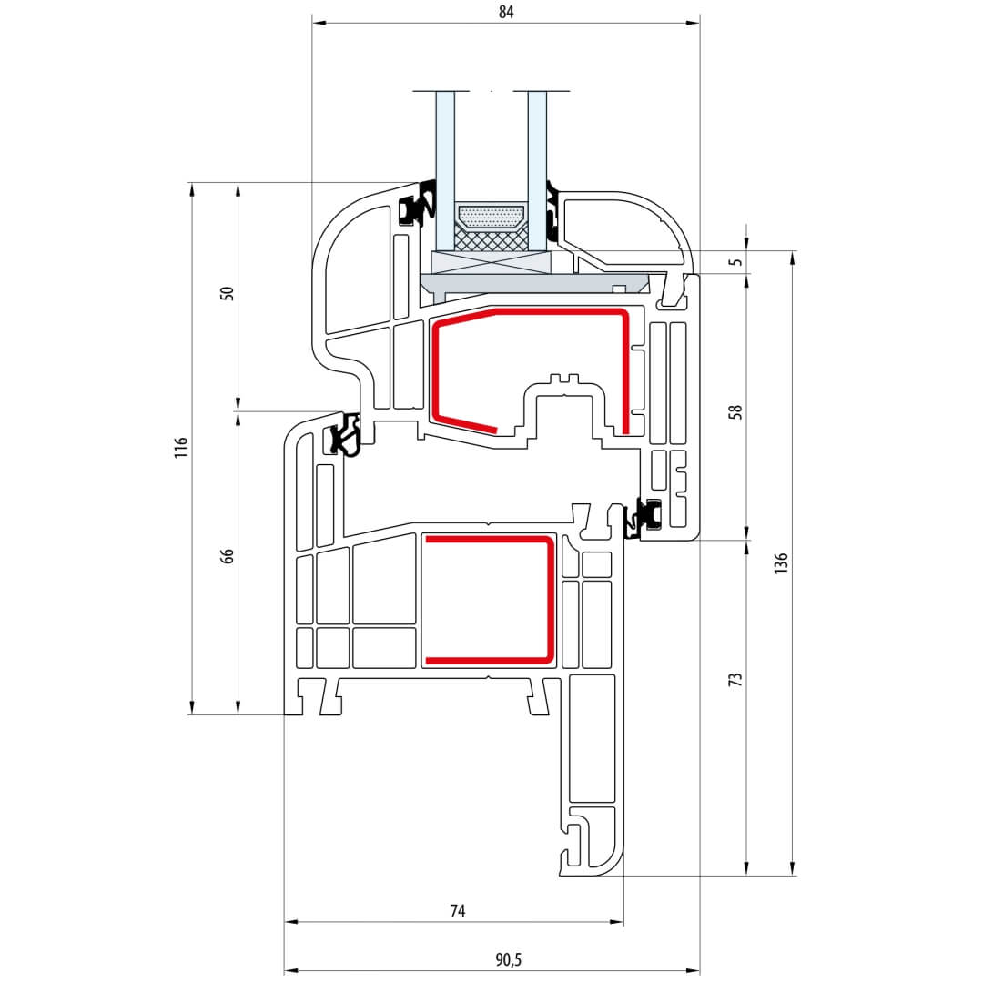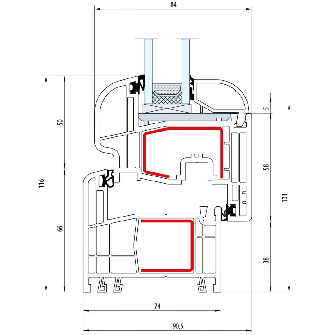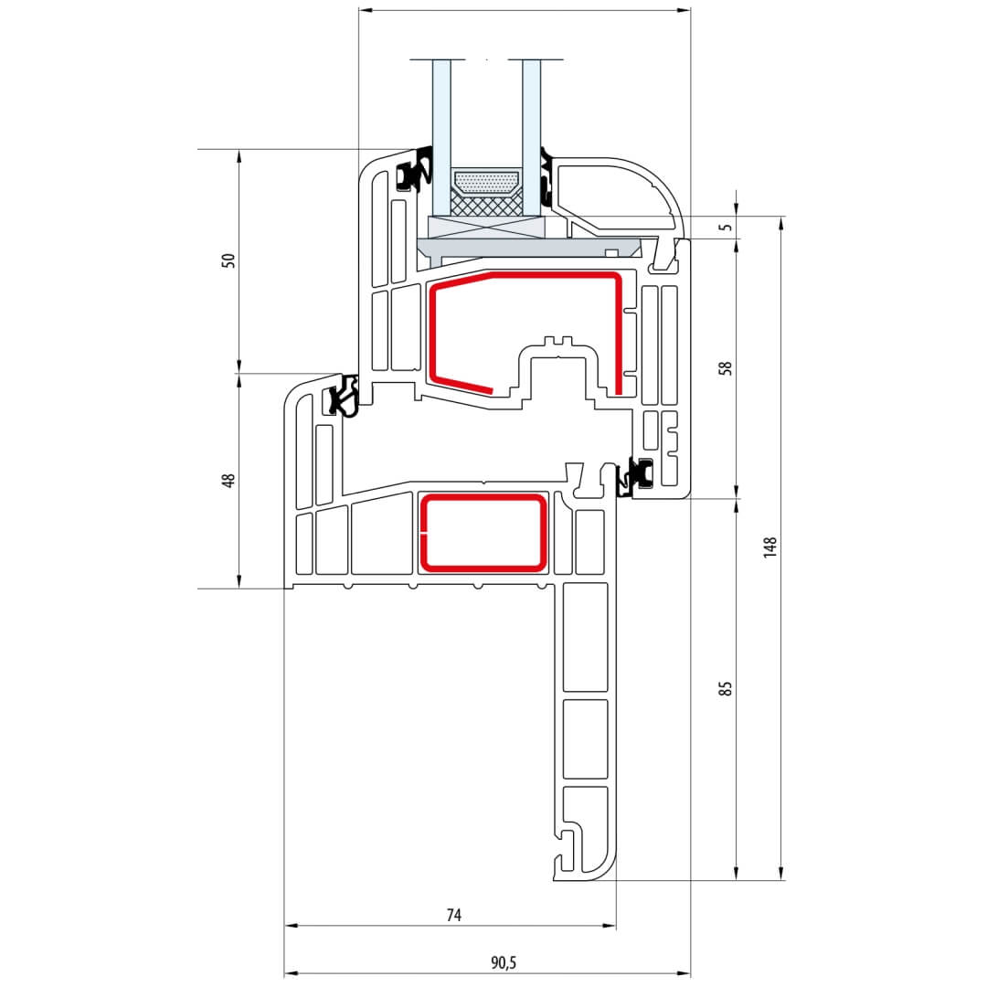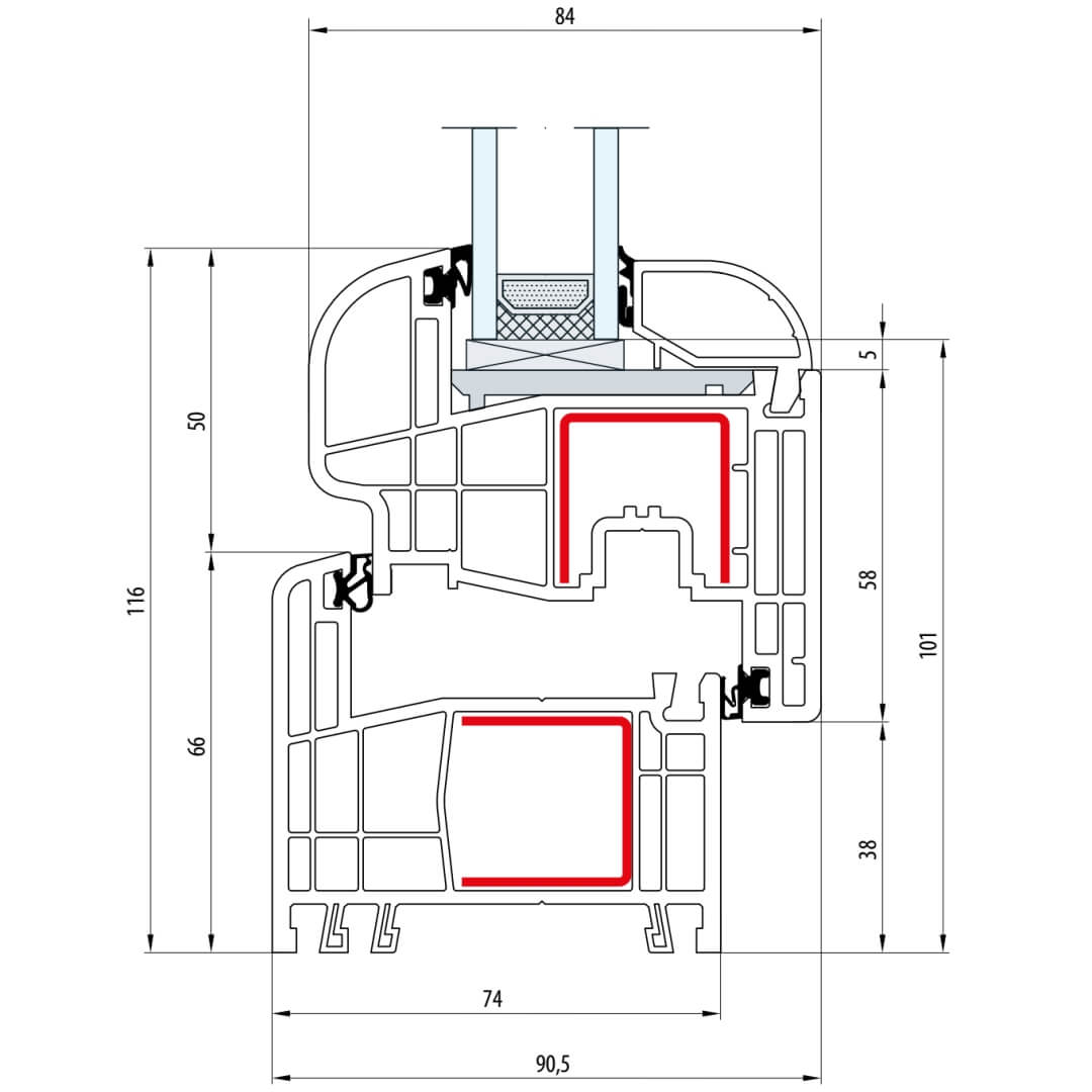 Gealan S 8000 Fenster Classic-Line 116mm Flügel 5-Kammer - 8001 - 8092