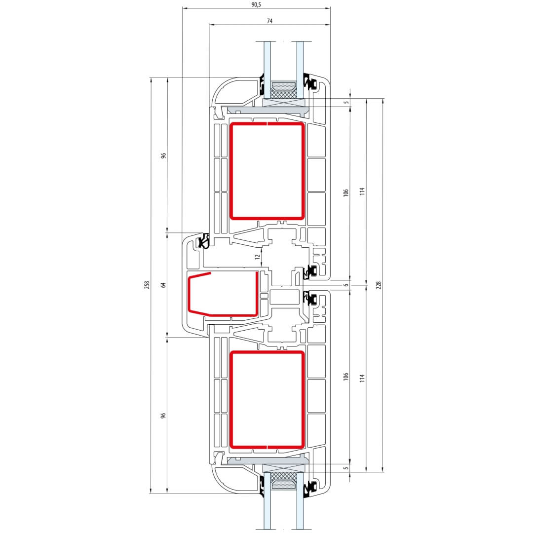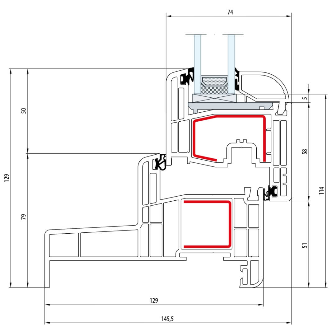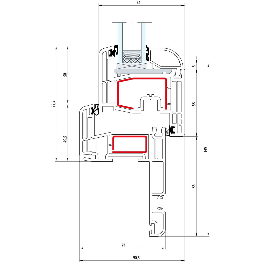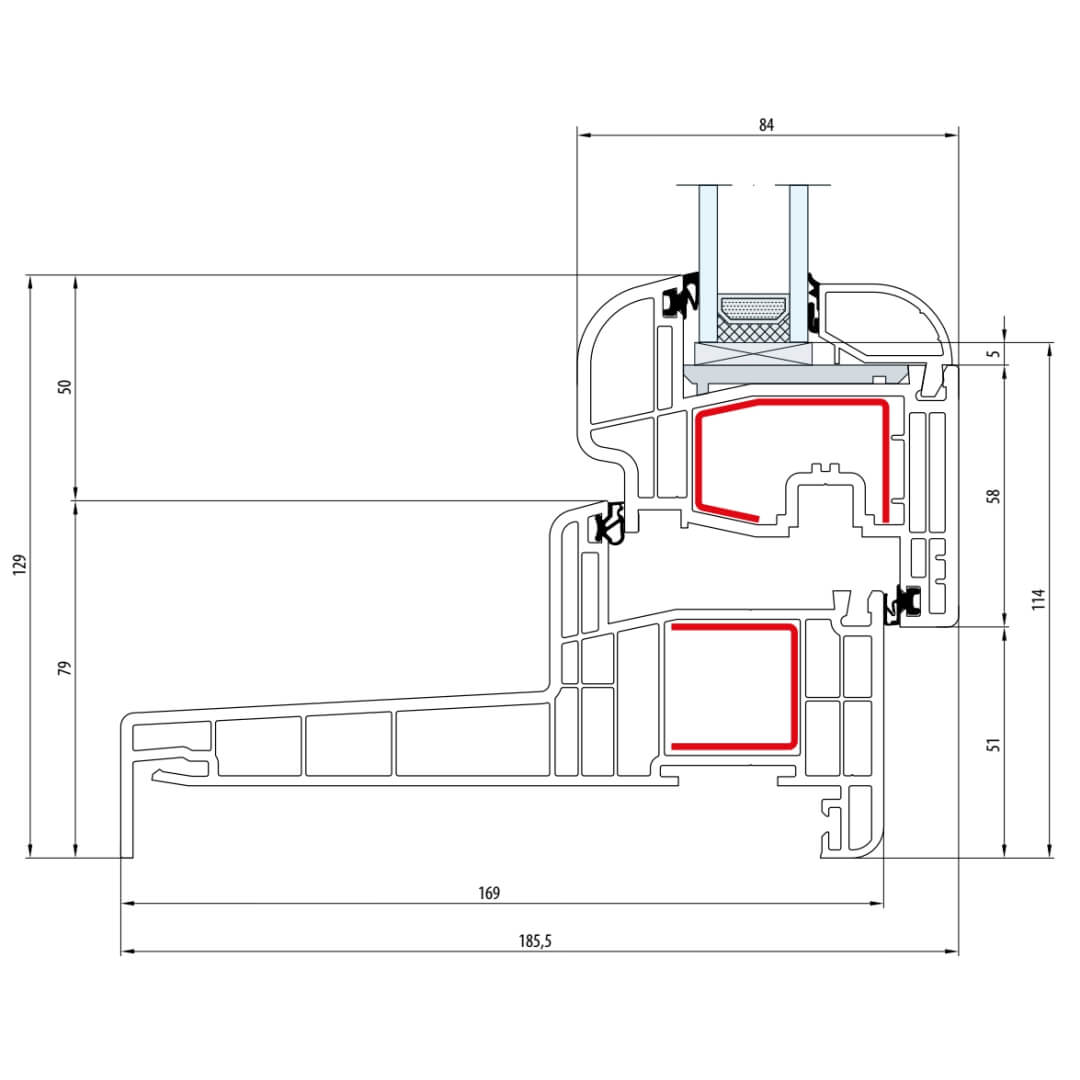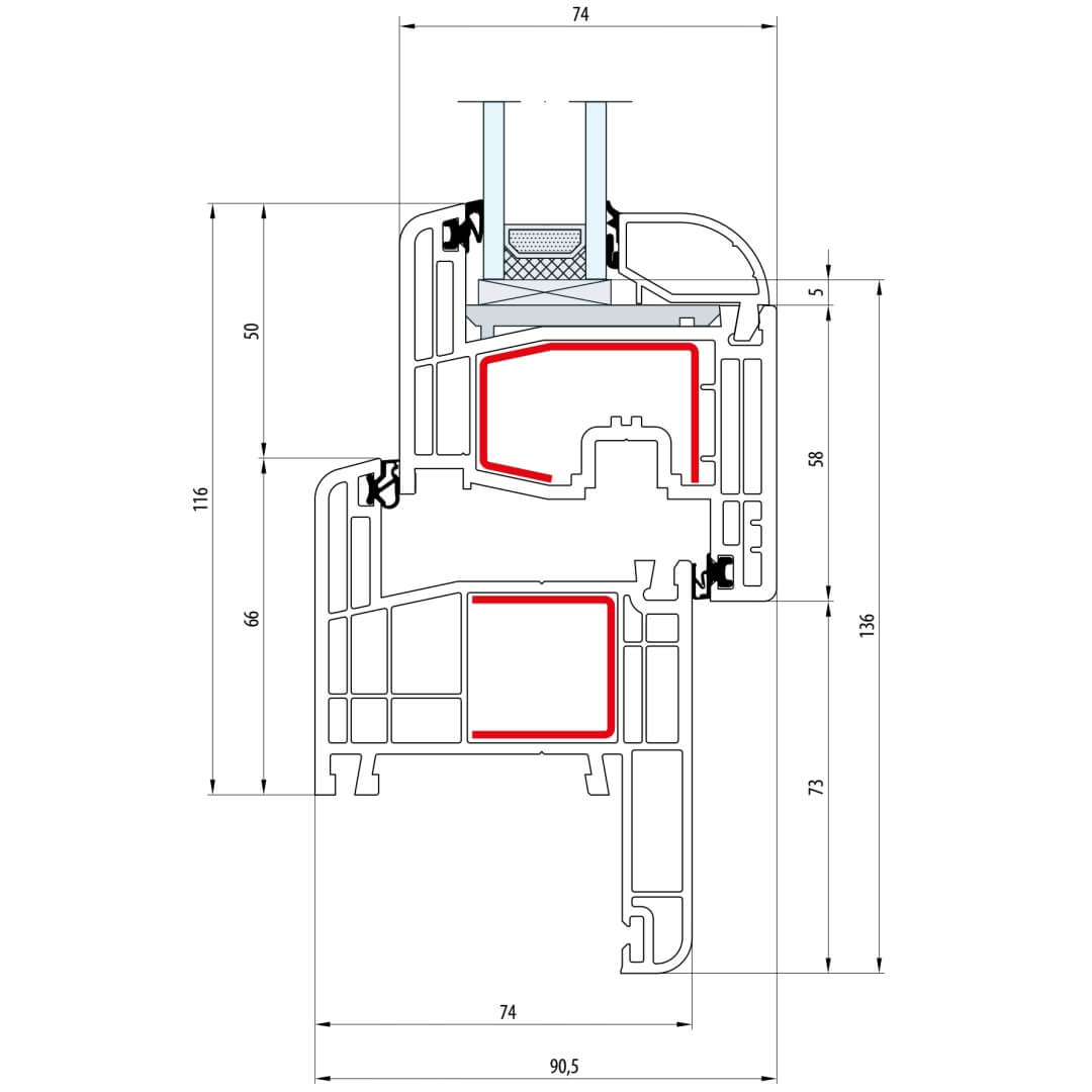 Gealan S 8000 Fenster Classic-Line 116mm Flügel 5-Kammer - 8001 - 8092