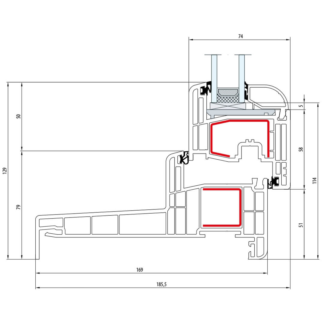 Gealan S 8000 Stulp 64mm Terrassenflügel innen öffnend Classic-Line - 8080 - 8081