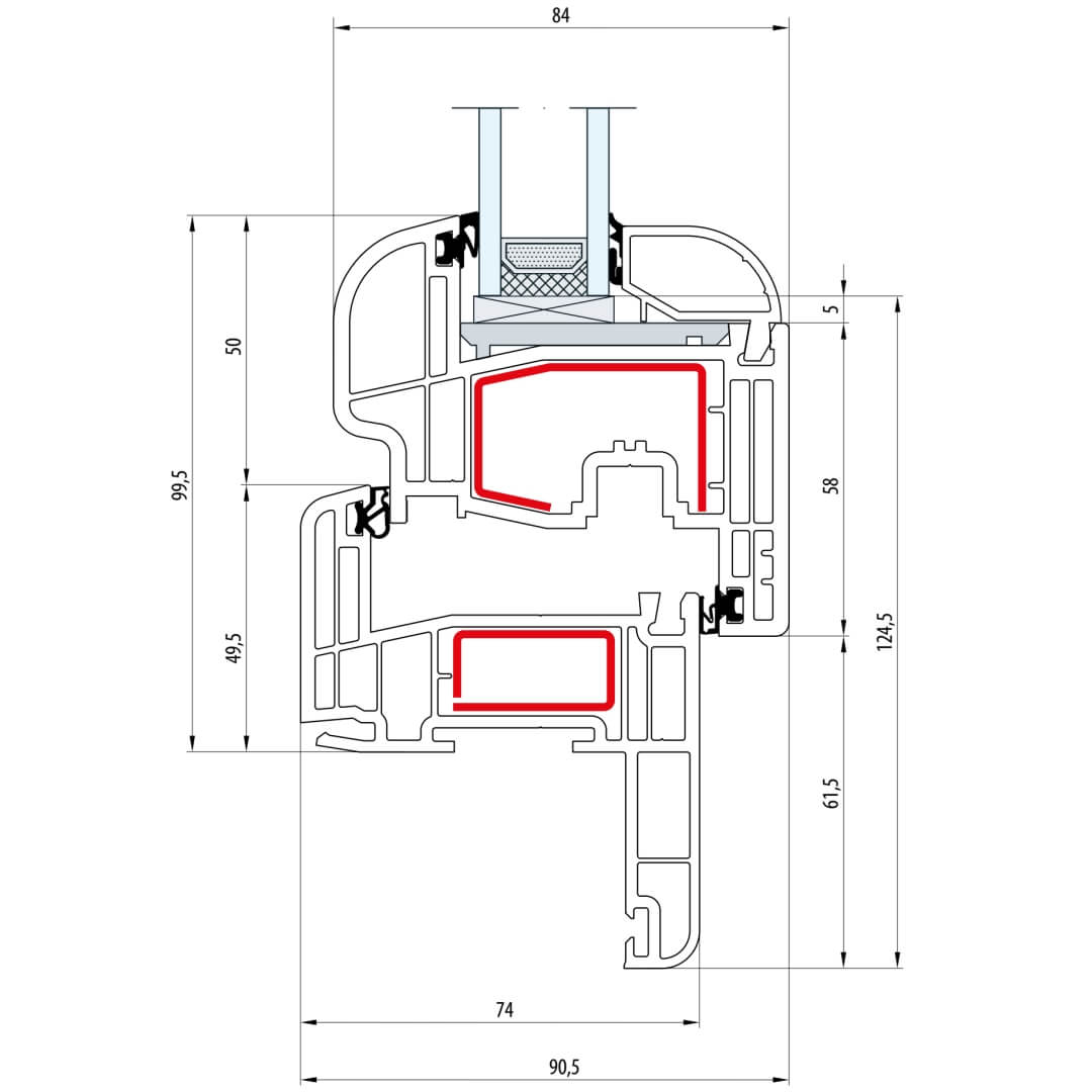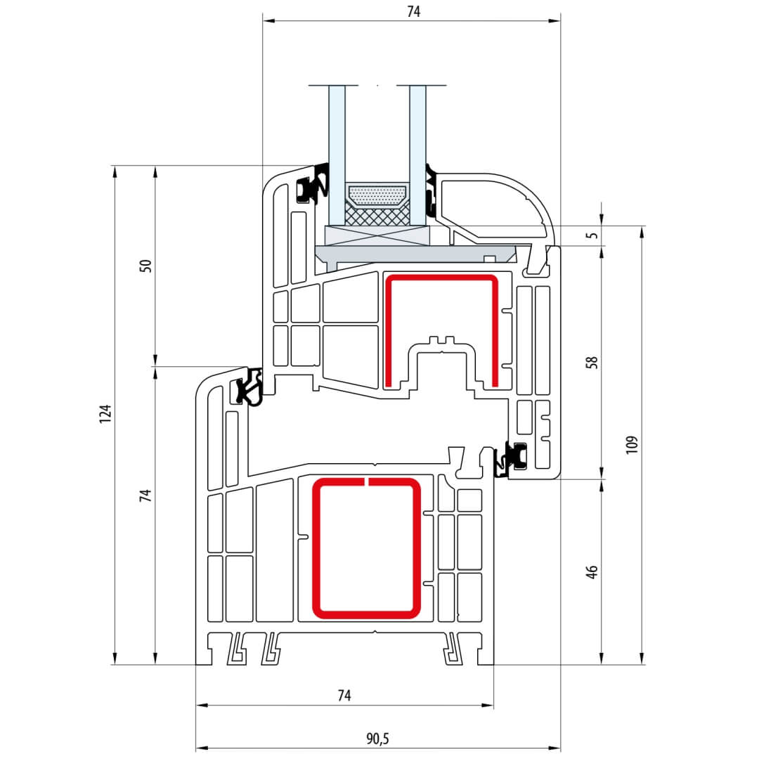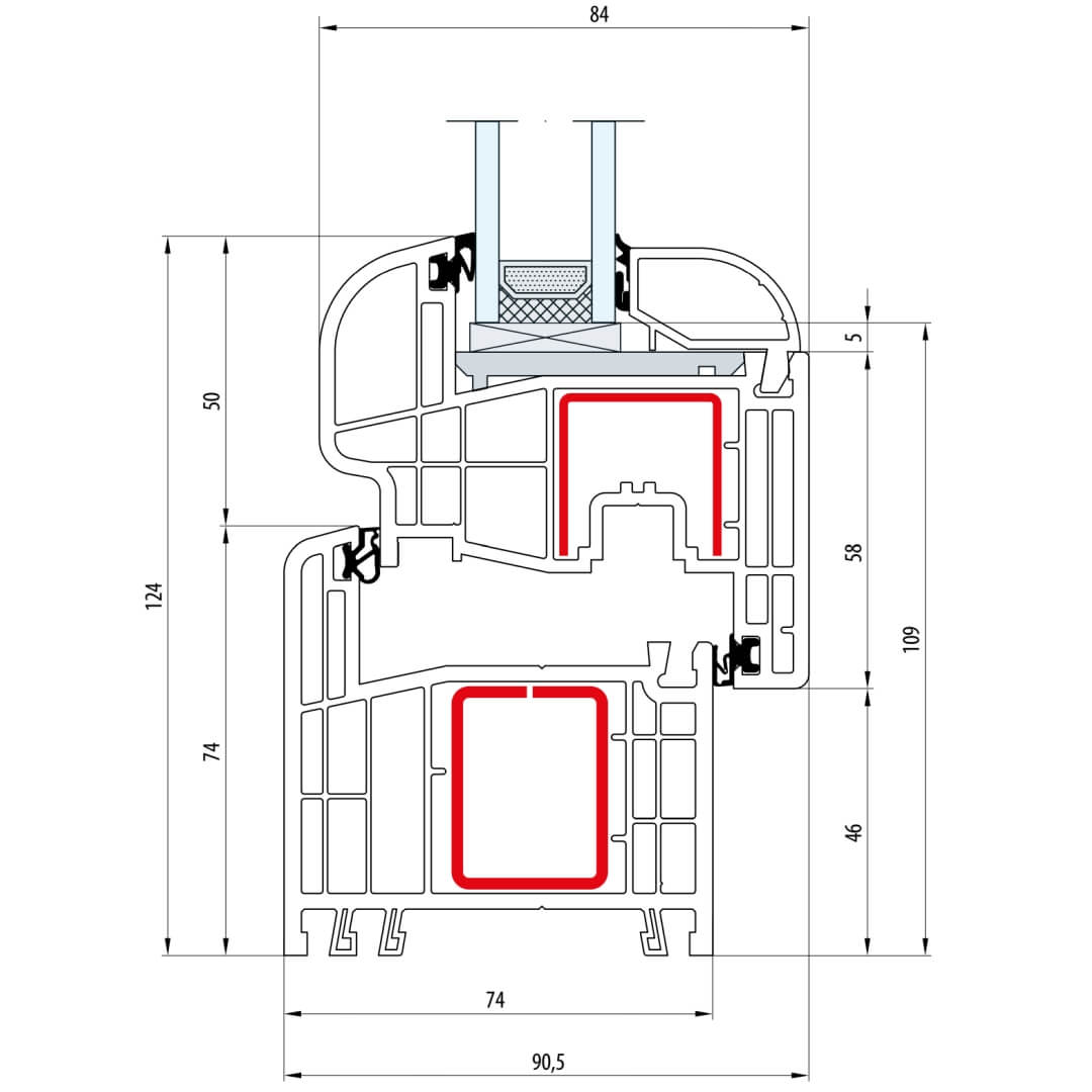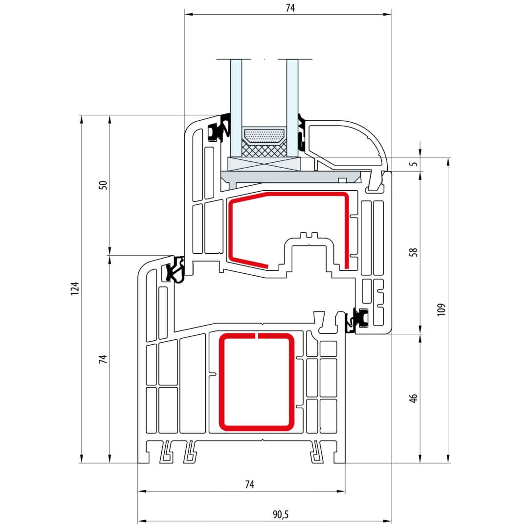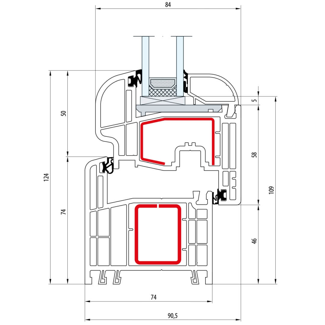 Gealan S 8000 Fenster Classic-Line 124mm Flügel 5-Kammer - 8010 - 8092