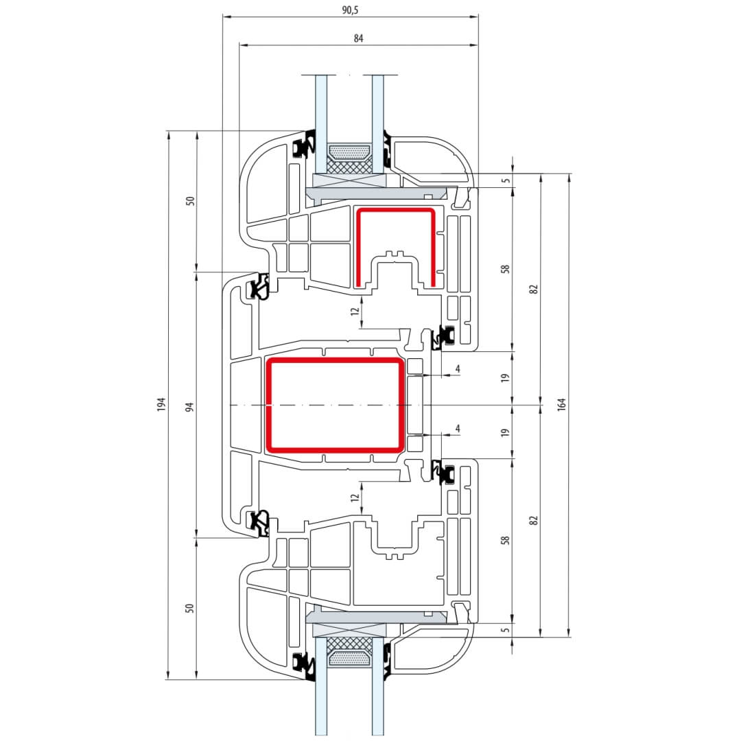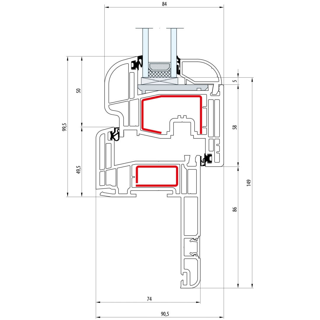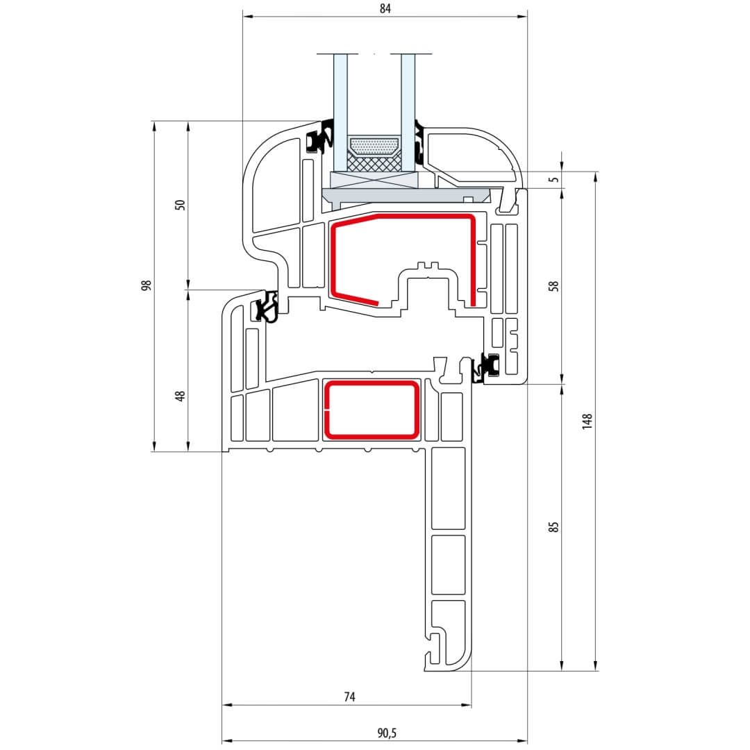 Gealan S 8000 Pfosten 94mm Fenster Classic-Line Flügel 5-Kammer - 8040 8092