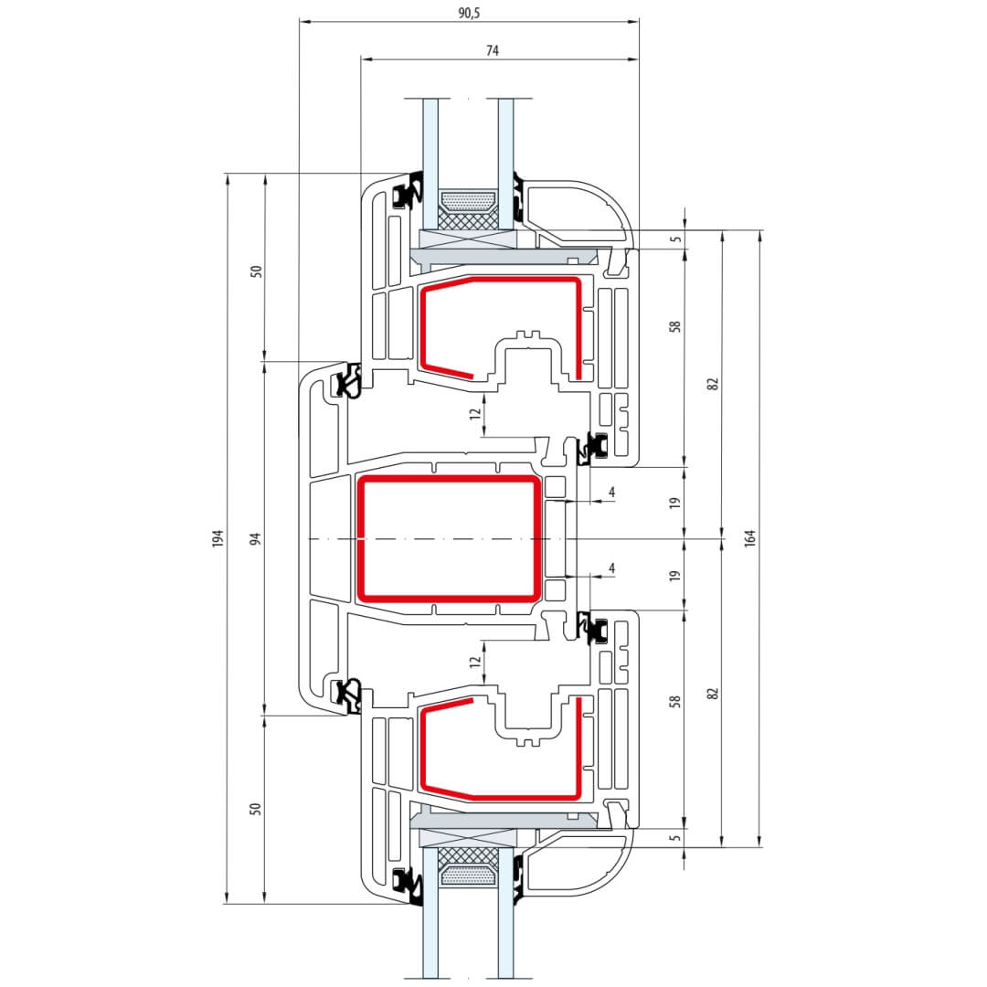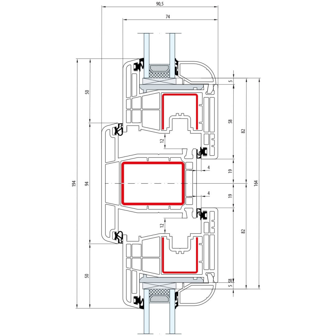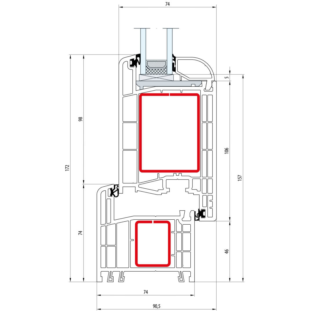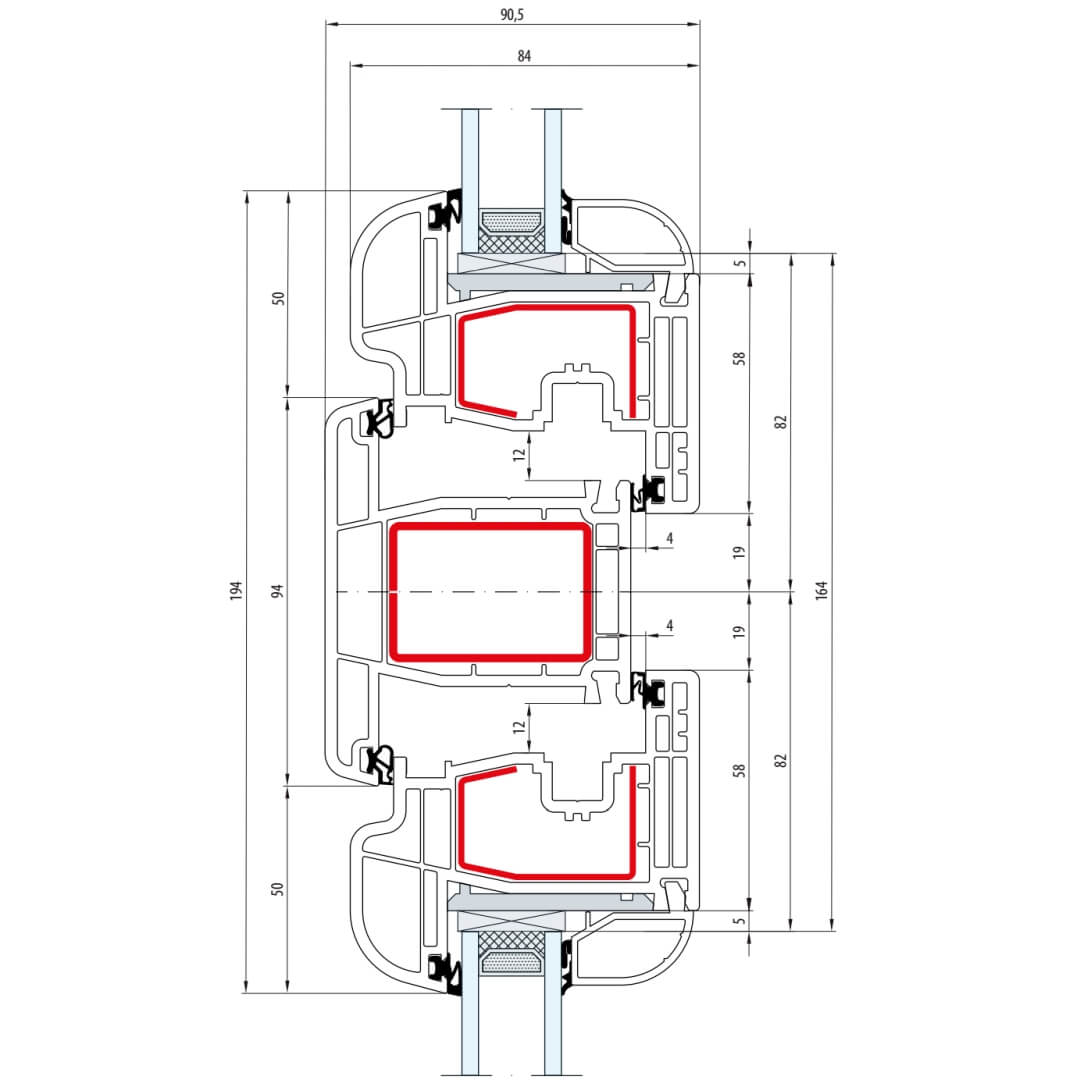 Gealan S 8000 Pfosten 94mm Fenster Classic-Line Flügel 5-Kammer - 8040 8092