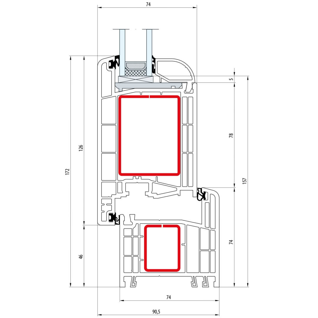 Gealan S 8000 Festverglasung 74mm - 8010
