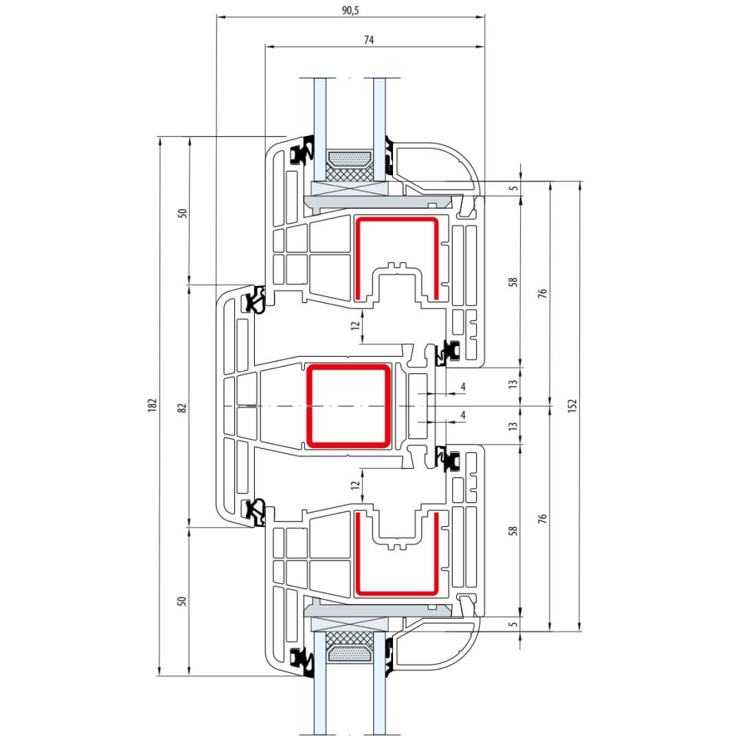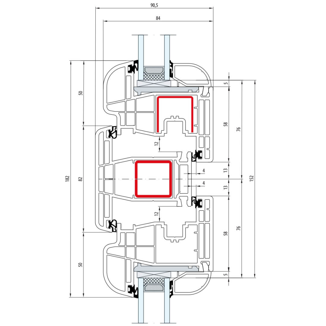 Gealan S 8000 Pfosten 82mm Fenster Classic-Line Flügel 6-Kammer - 8038 8095