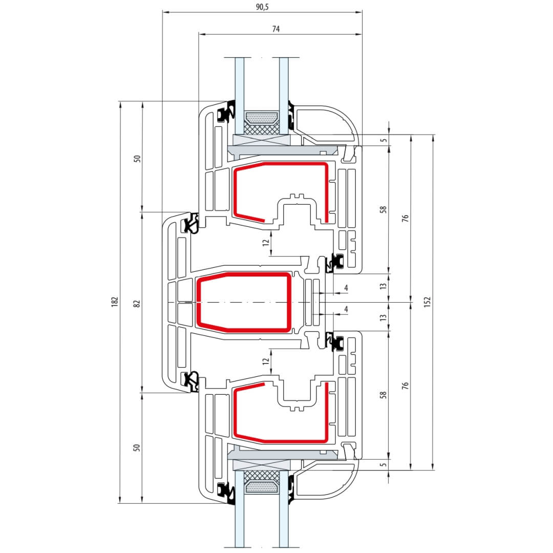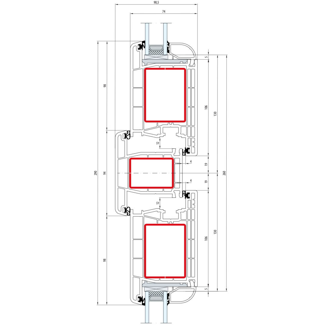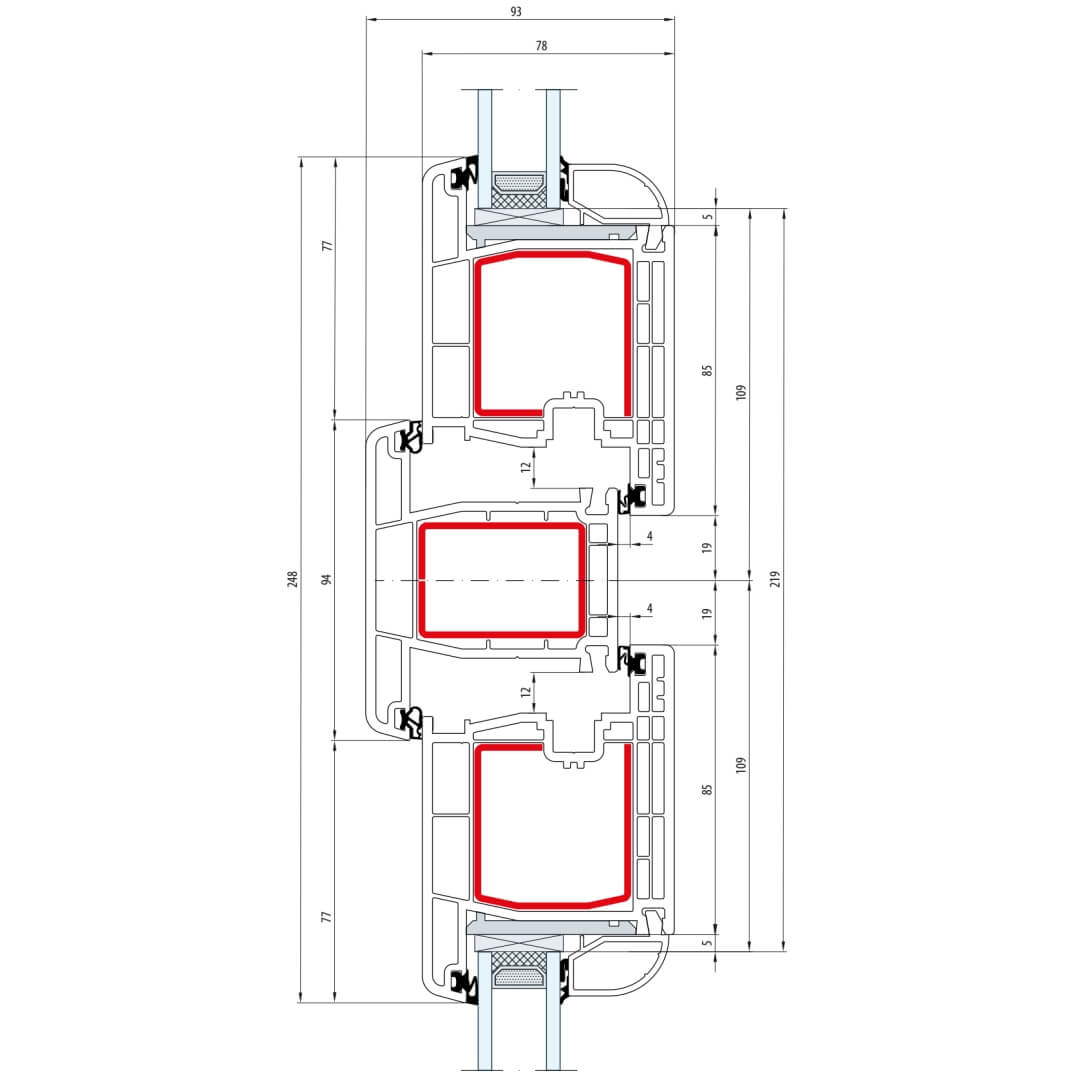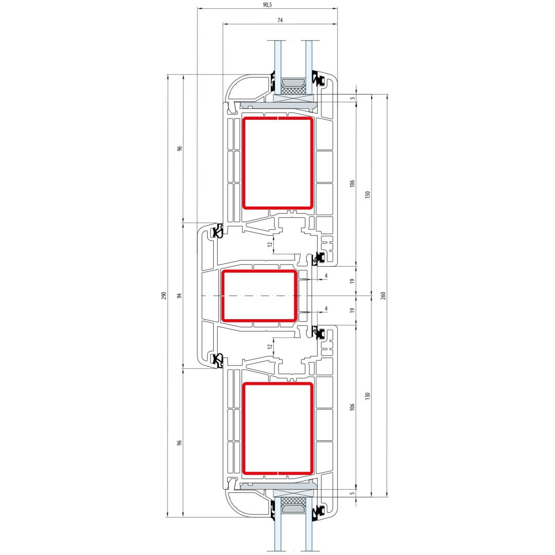 Gealan S 8000 Pfosten 94mm Fenster Classic-Line Flügel 6-Kammer - 8040 8095