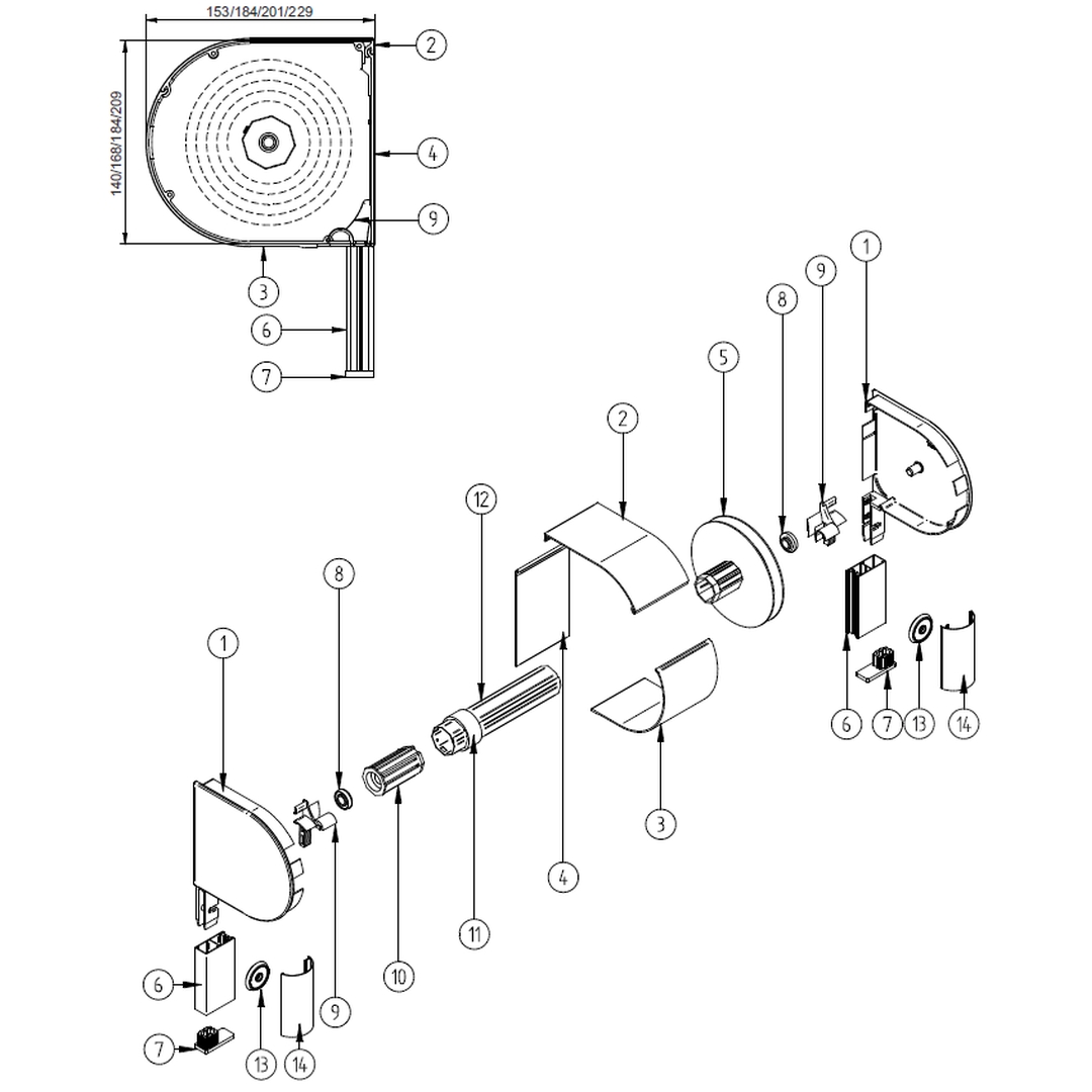 Explosionszeichnung Vorbaurollladen POL extrudiert