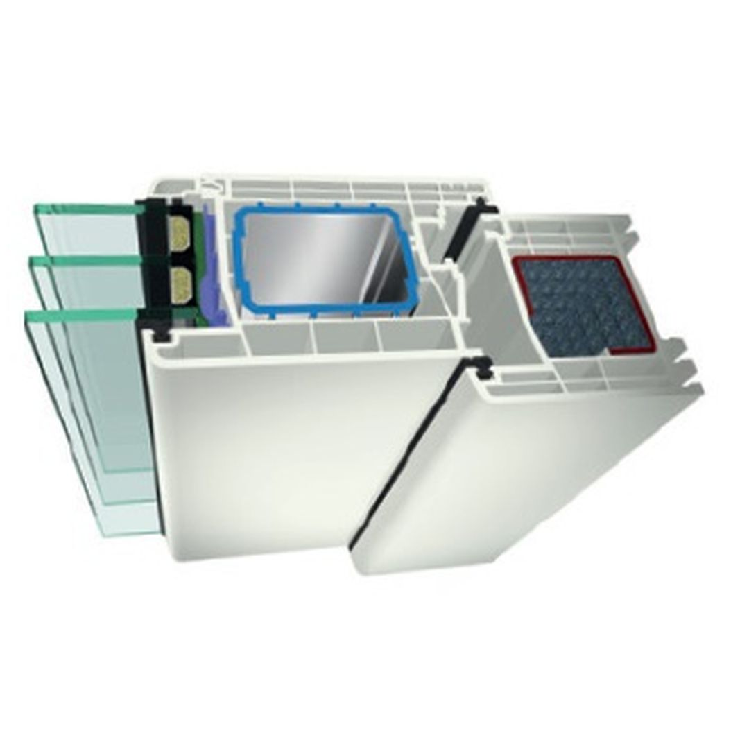 Die Kunststoffprofile verfügen über ein Dichtungssystem mit 2 Anschlagsdichtungen aus EPDM.