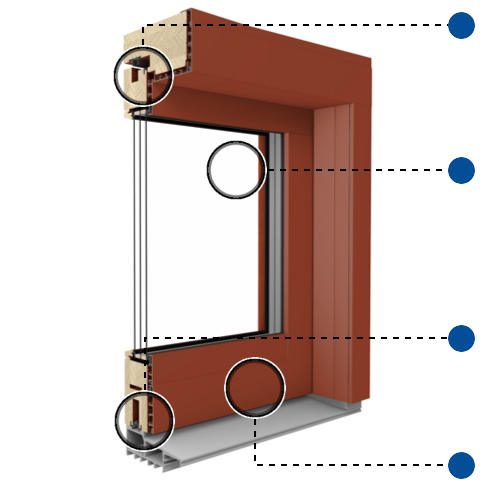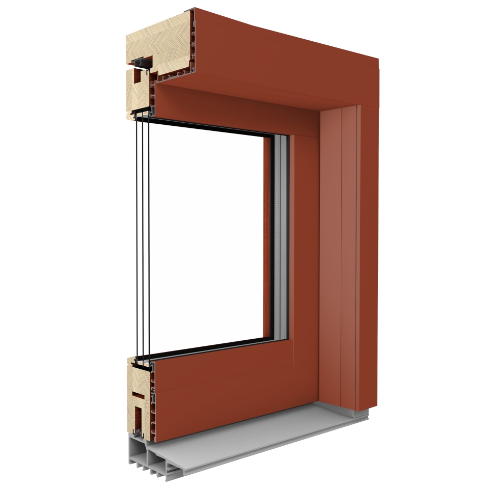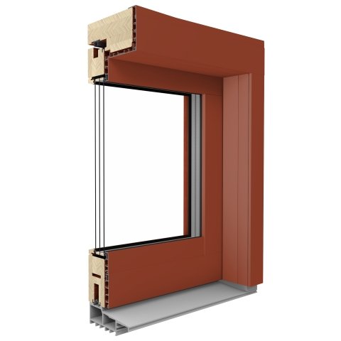 Mehrfach schichtverklebtes Kiefern-, Lärchen- oder Merantiholz mit Bautiefen von 68 mm, 78 mm oder 88 mm.