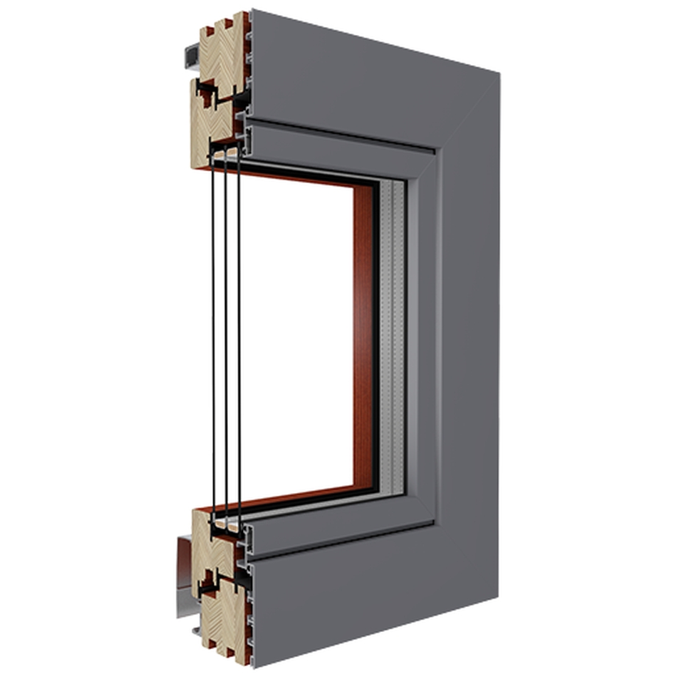 Mehrschichtenverklebtes massives Kiefer-, Merantikantholz 450+ oder Lerchenkantholz mit Bautiefen von 68 mm, 78 mm oder 88 mm. Dichtungen aus TPE und EPDM.