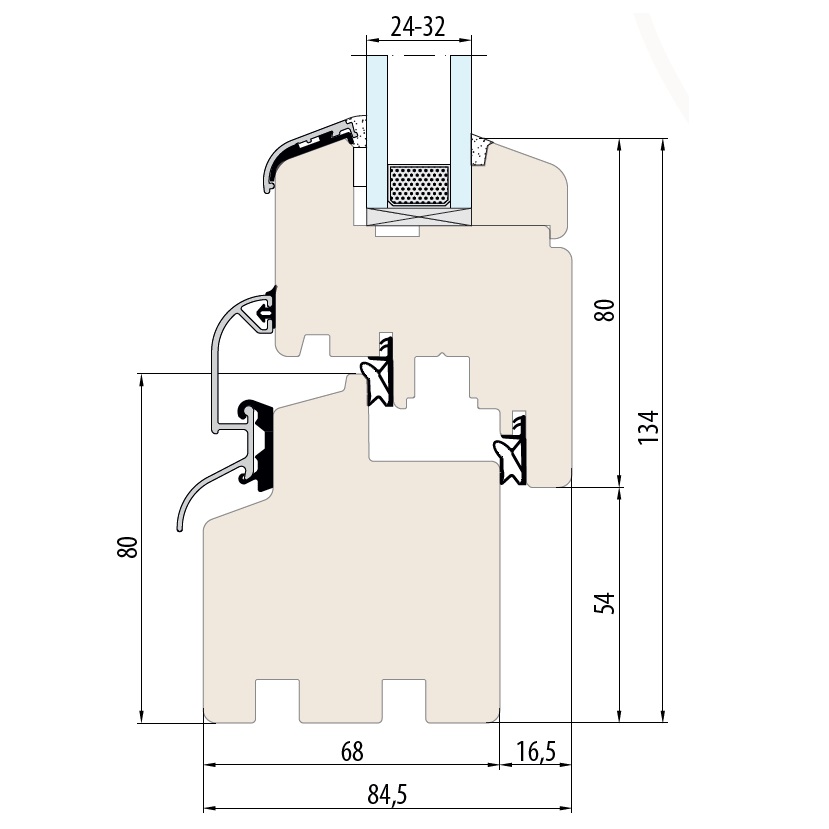 - Schichtverleimter Rahmen mit 68 mm Bautiefe