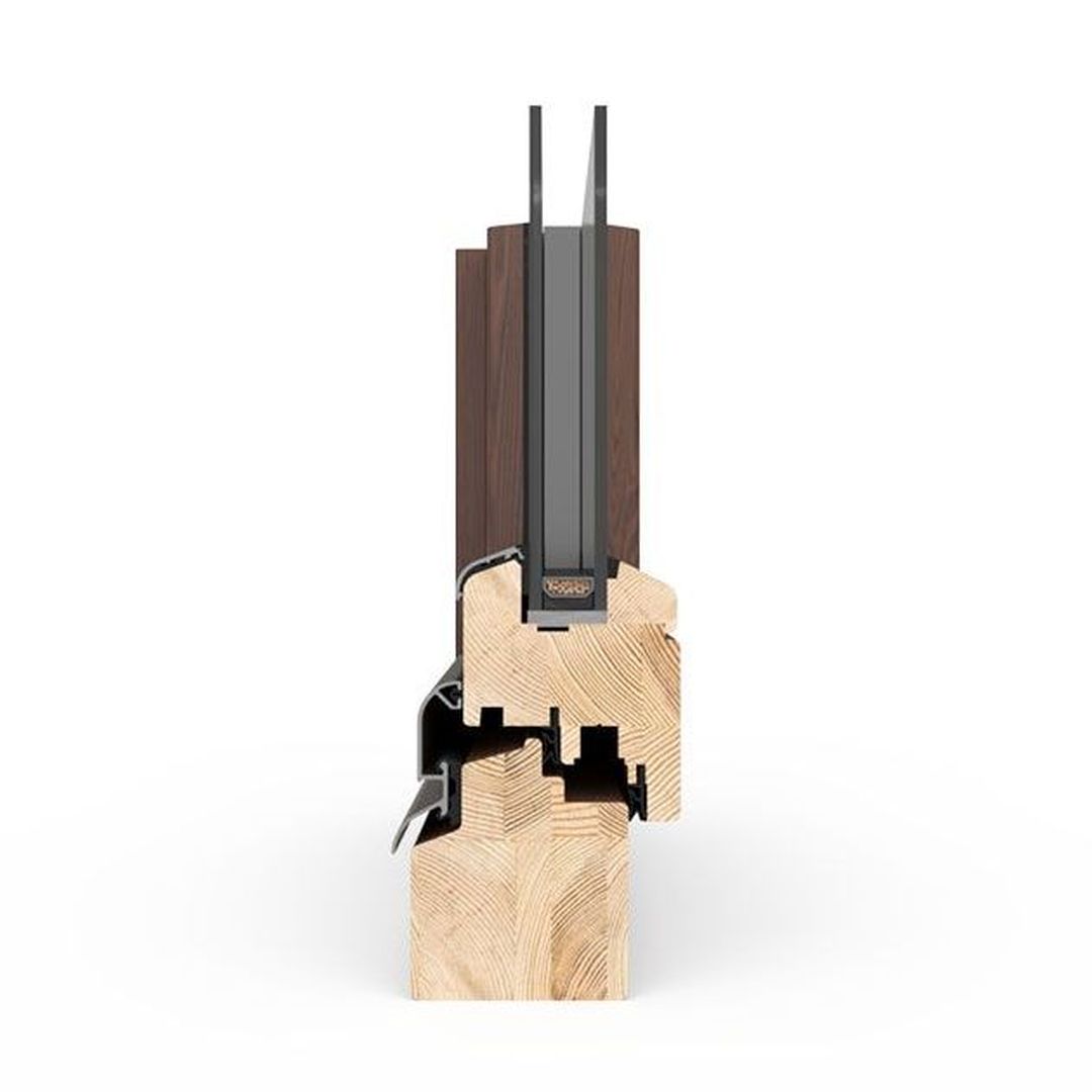 Hochwertiges Holzprofil mit einer Bautiefe von 68 mm, das durch seine natürliche Ästhetik und hervorragende Wärmedämmwerte überzeugt.