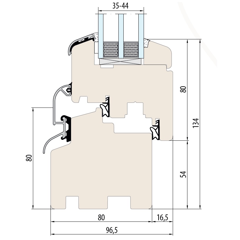 - Schichtverleimter Rahmen mit 80 mm Bautiefe