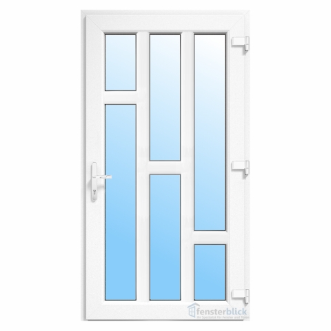 Die stufenförmig angeordneten Kämpferapplikationen erzeugen ein wunderschönes Musters, welches der Nebeneingangstür Prenzlau eine harmonische und einladende Ausstrahlung verleiht. Die Nebeneingangstür Gläser bestehen aus einer energieeffizienten Isolierverglasung und können auf Wunsch mit verschiedenen Funktionsgläsern ausgestattet werden. Sicherheitsverglasung wie das VSG bieten dann eine höhere Einbruchsicherheit, während Ornamentgläser einen ästhetisch ansprechenden Sichtschutz darstellen. Der große Vorteil der Eingangstür Prenzlau zu Paneel-Füllungen ist der starke Lichteinfall. Geben Sie Ihrer kreativen Seite Freiraum und gestalten Sie Ihre neue Nebeneingangstür im Türen-Konfigurator von Fensterblick. Dort finden Sie eine umfassende Auswahl an Farben, Griffen und anderen Accessoires, welche frei mit verschiedenen Bautypen und Türfüllungen wie dem Modell Prenzlau kombiniert werden können.
