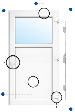 Das Verriegelungssystem mit wahlweise Haken, Haken-Bolzen oder Schlossfallen schützt Ihr Heim zuverlässig gegen Einbrecher. Die Zahl der Verriegelungspunkte ist variabel und an die eigenen Sicherheitsbedürfnisse anpassbar.