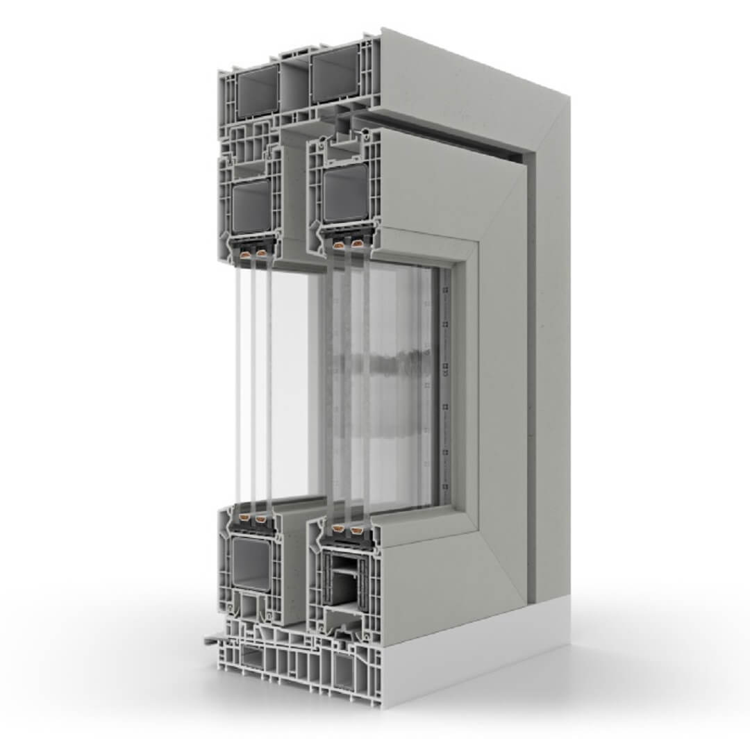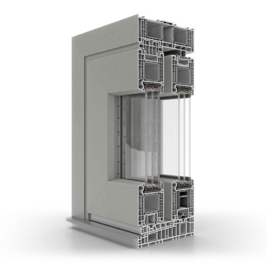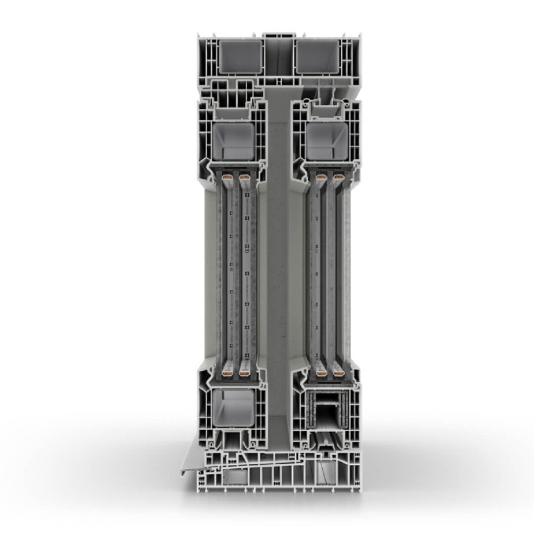 Das 5-Kammer-Profil mit 194 mm Bautiefe und 82 mm Flügelbreite bietet hervorragende Wärmedämmung und Stabilität, ideal für großflächige Verglasungen.