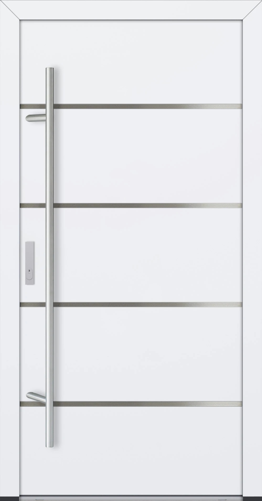 - Optik Haustürblatt: beidseitig flügelüberdeckend, außen flächenbündig