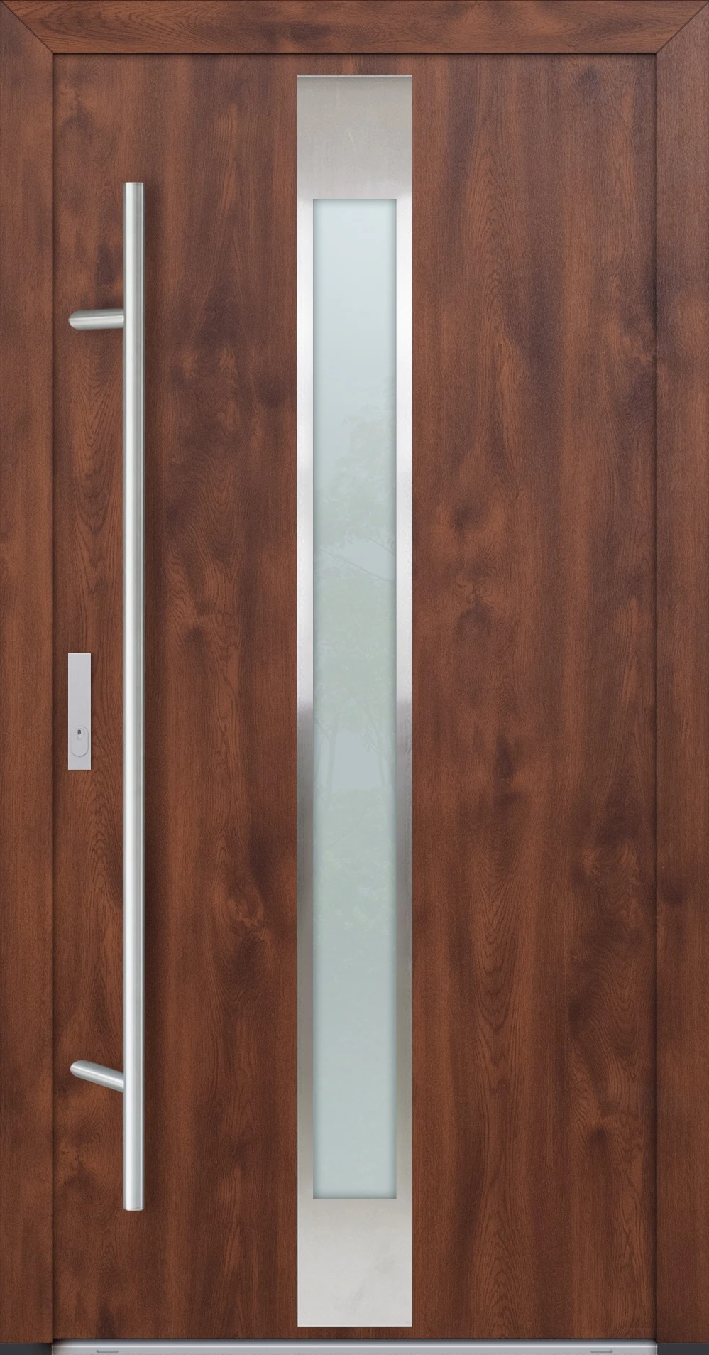FM Aluminium Haustür DS 82 Modell 05 Nussbaum - 4-fach Verglasung mit Satinato
