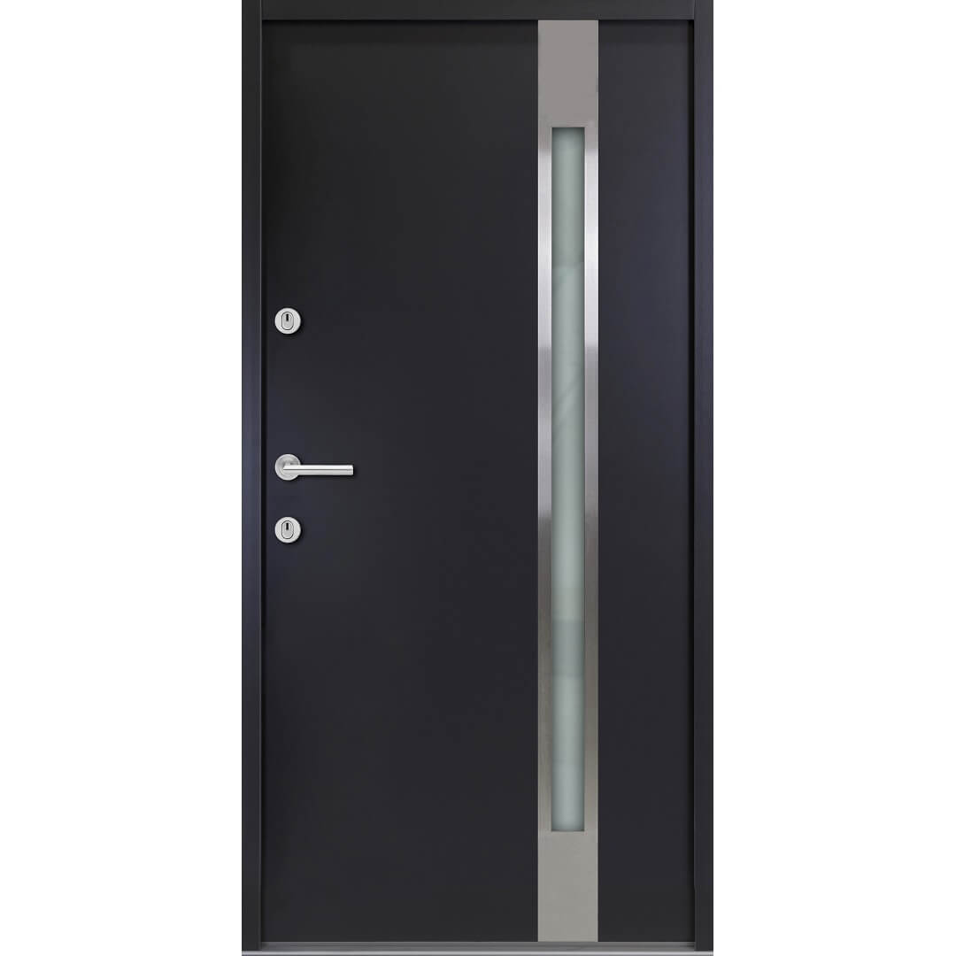 FM Stahl Nebeneingangstür ATS 56 Modell ATS504 Anthrazit - 3-fach Verglasung mit Satinato