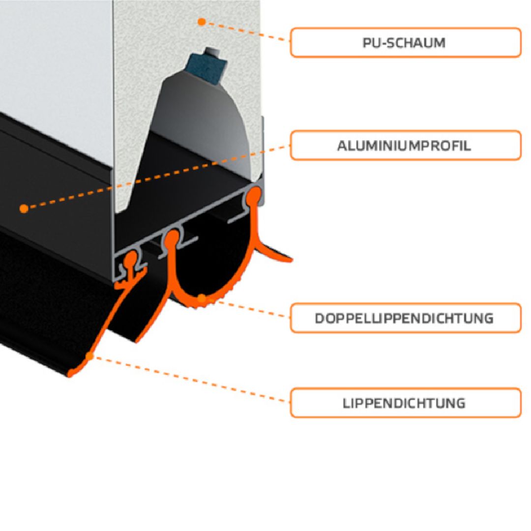 - Dichtungen: Doppelte Rundum- und Sektionsdichtung, Doppellippendichtung
