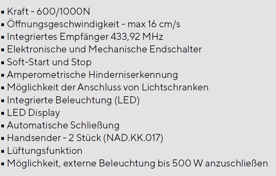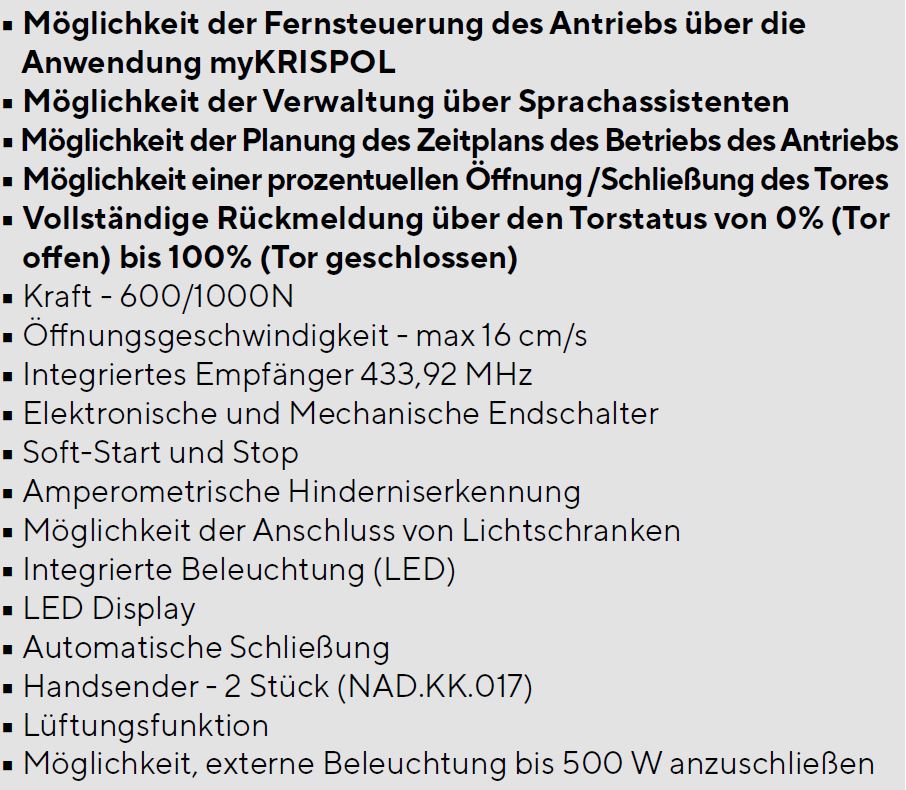 Krispol Sektionaltor Vente K2 RFS E - Antrieb Zubehör: