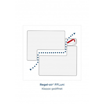 Der Regel-air® FFL-uni ist ein Fensterfalzlüfter, der sich selbstständig reguliert und sowohl für werkseitige Montagen als auch Nachrüstungen geeignet ist. Er kann praktisch auf alle Arten von Fenstern angebracht werden, mit Ausnahme von flächenbündigen Fenstern. Der Lüfter hat zwei Klappen, die unabhängig voneinander arbeiten und den Volumenstrom je nach Winddruck anpassen, um Zugerscheinungen zu vermeiden. Die Installation erfolgt durch Anschrauben an den oberen Blendrahmen mit Hilfe einer Bohr- und Schneideschablone.